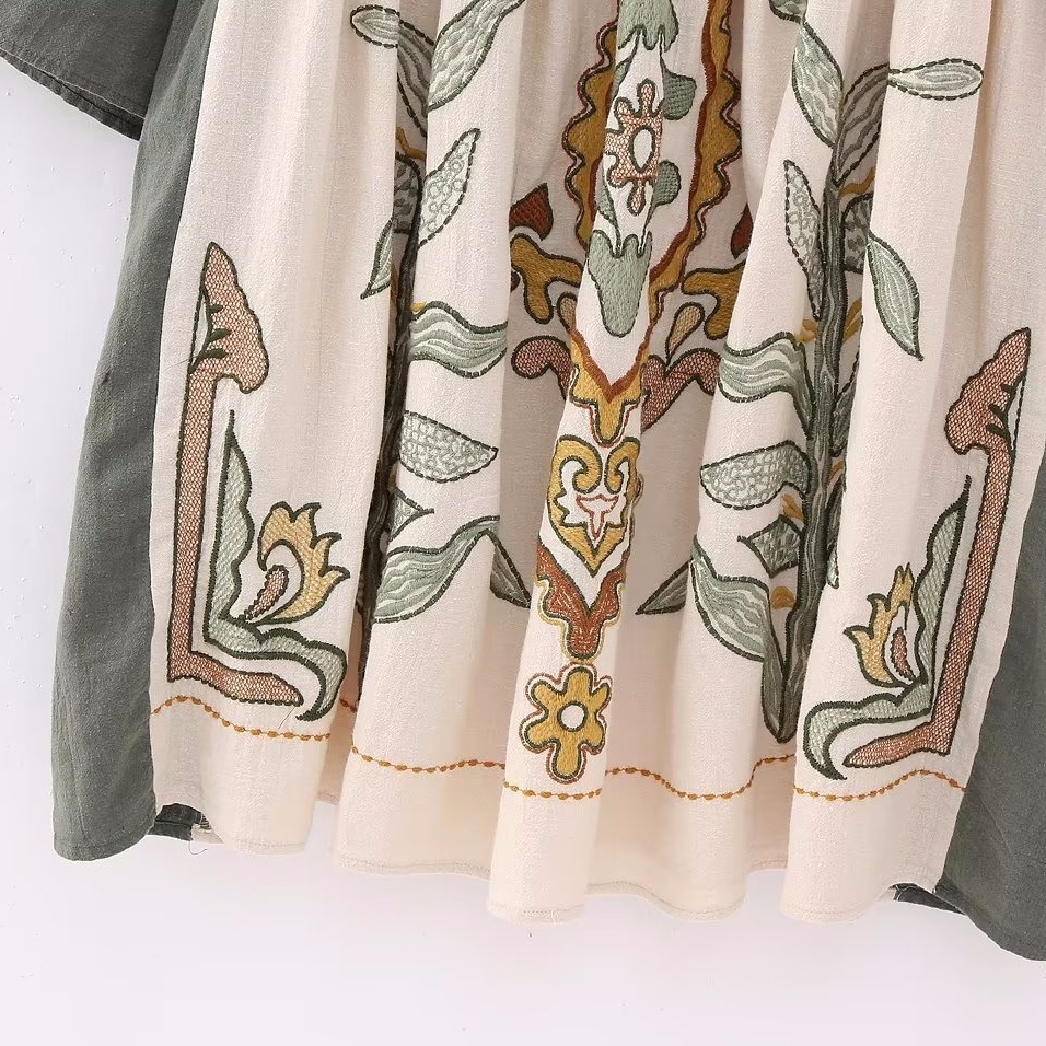 2025外贸跨境批发欧美女装V领宽松刺绣连衣裙 3584