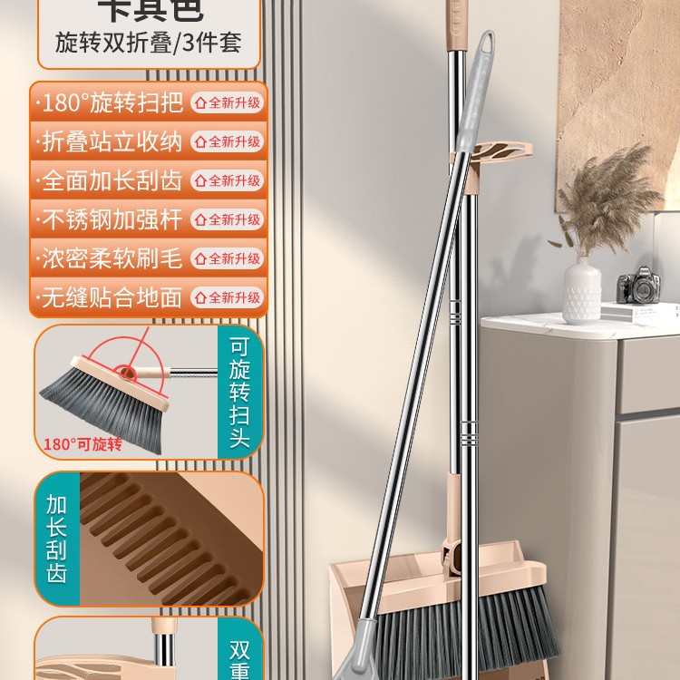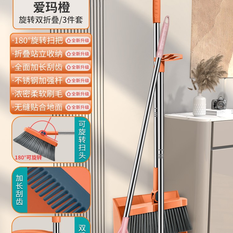 扫把套装家用折叠扫帚簸箕组合套装软毛刷笤帚条不粘头发扫地刮水