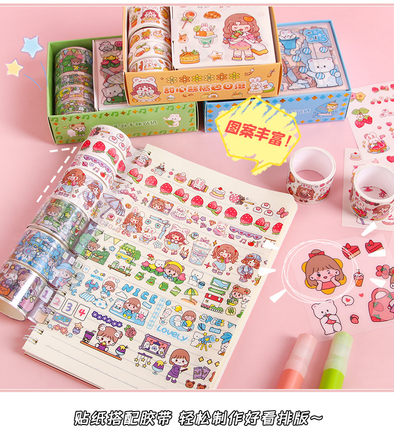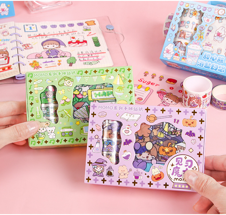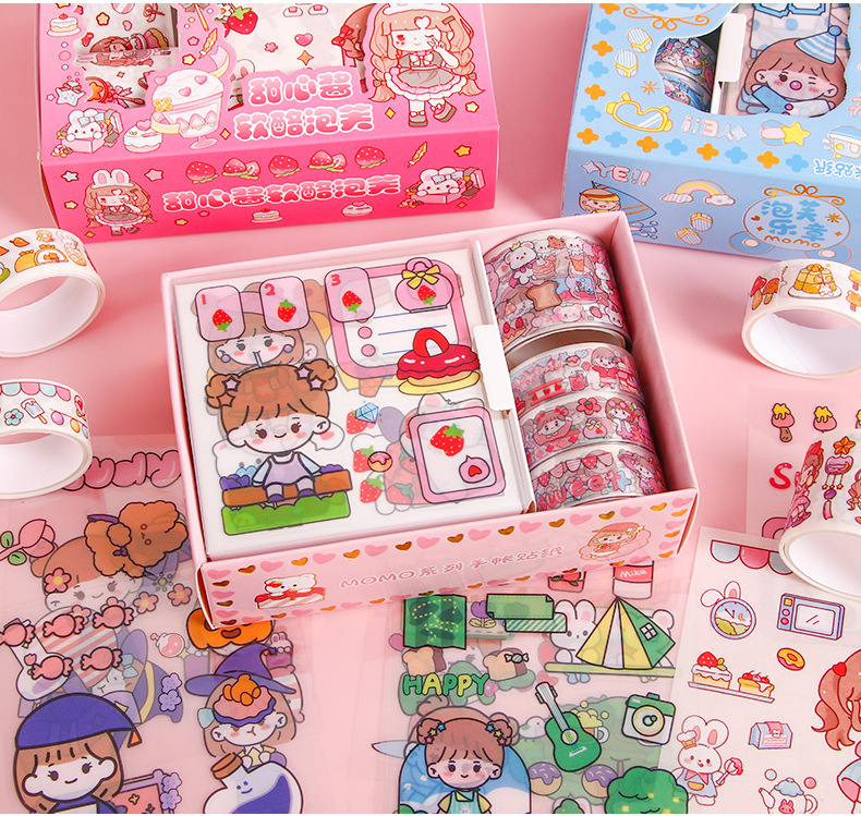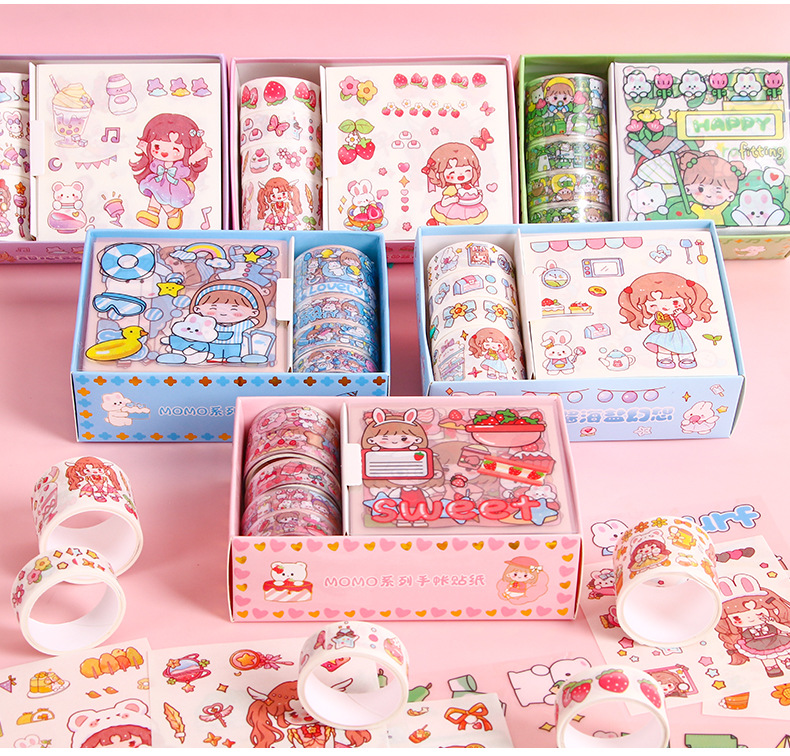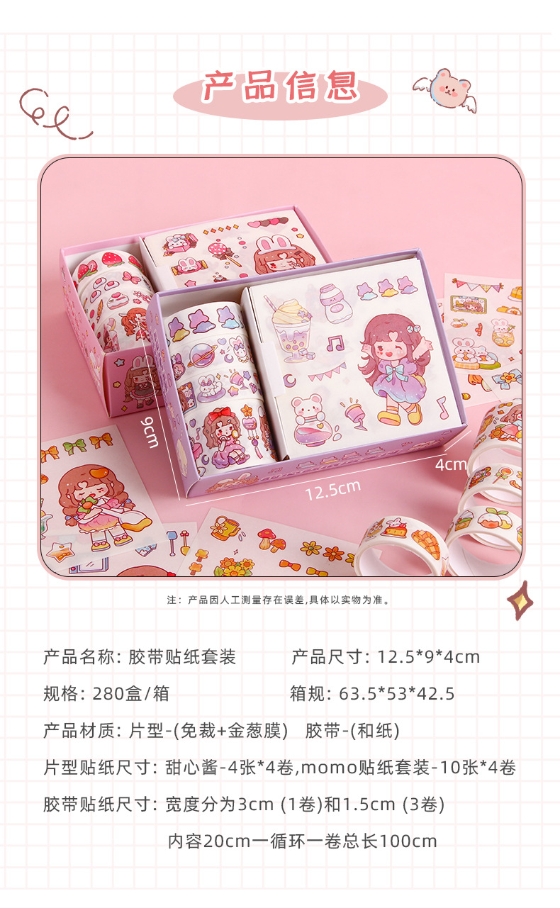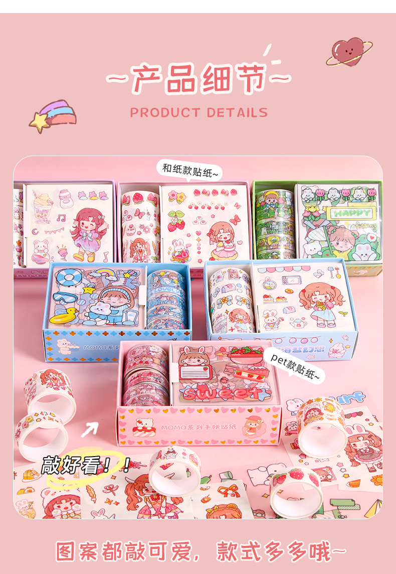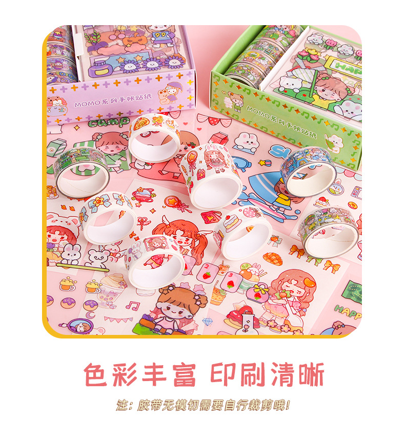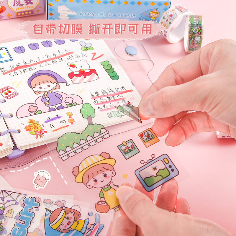 创意可爱pet手账胶带套装MOMO酱ins手账贴纸DIY手工装饰素材贴画