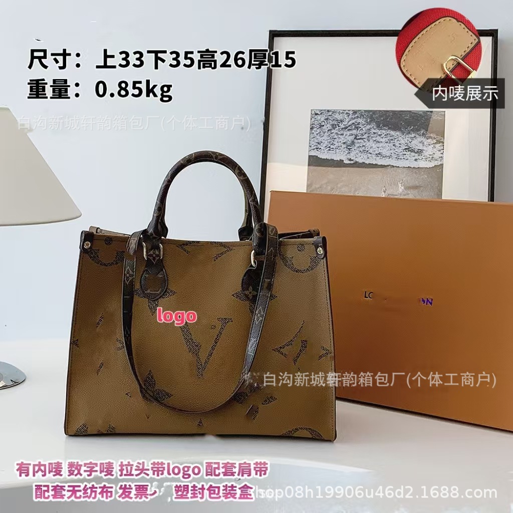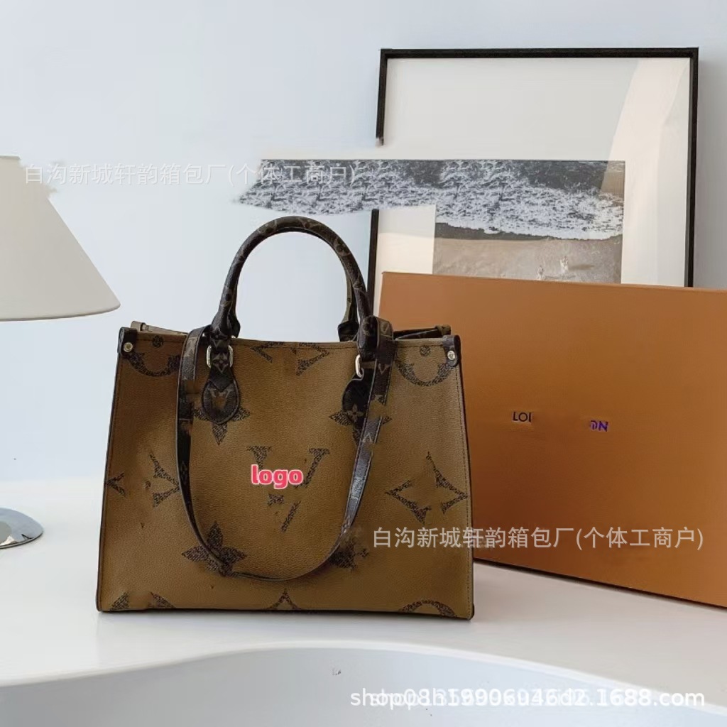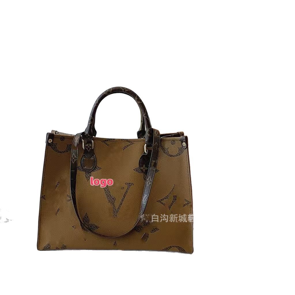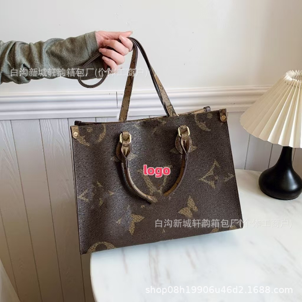 订购外贸包包女2024新款老花真皮购物袋托特女包大容量单肩手提包