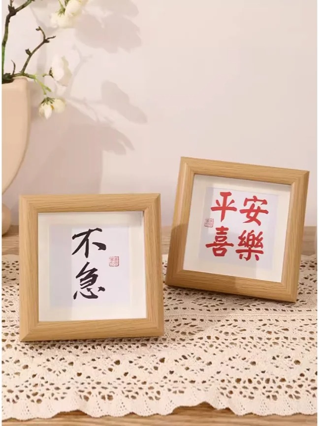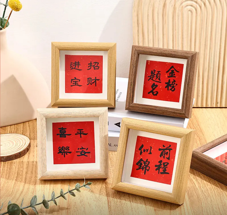 中空立体相框摆台迷你正方形画框4寸5寸6寸木质书画DIY桌面摆件