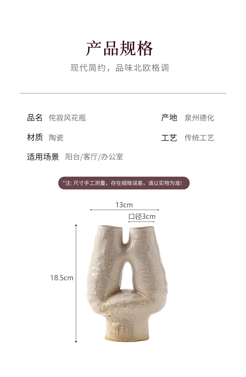 北欧白色花瓶极简轻奢陶瓷摆件家居饰品展厅花器意式艺术软装跨境