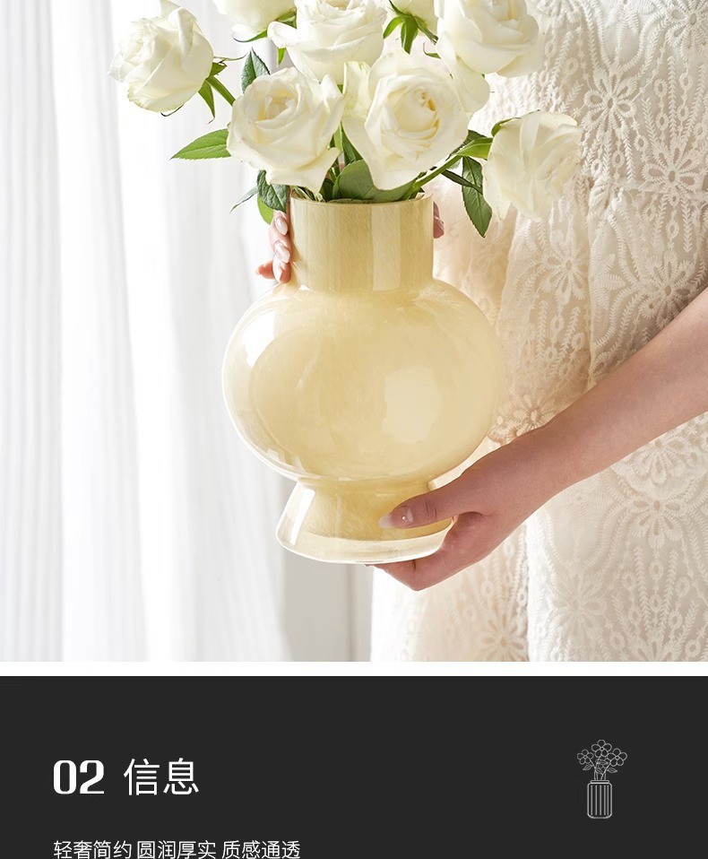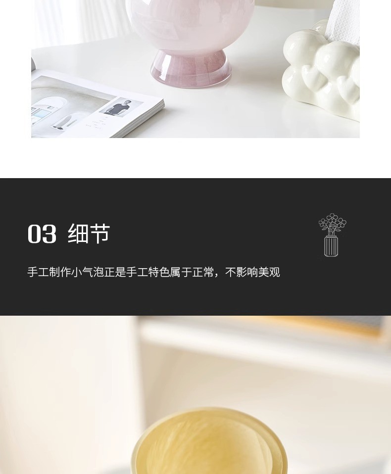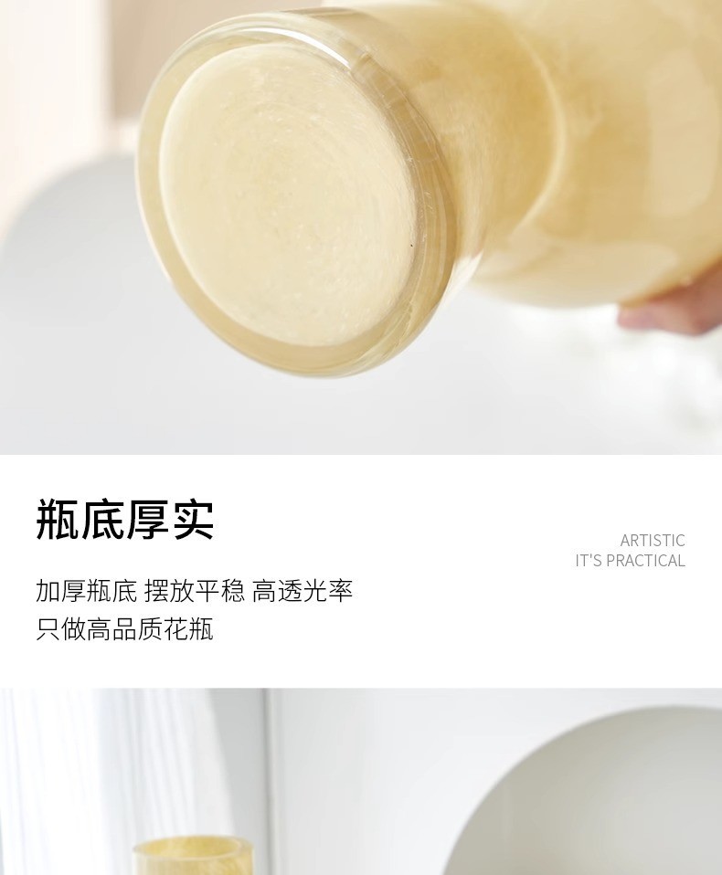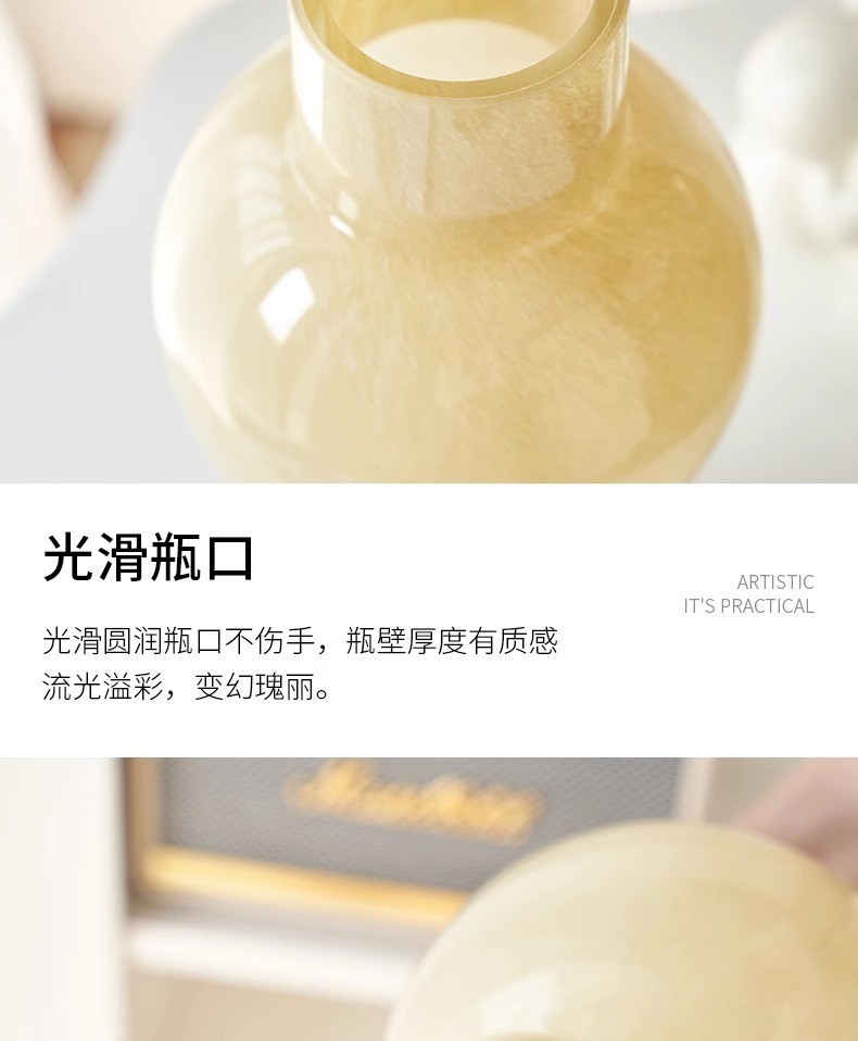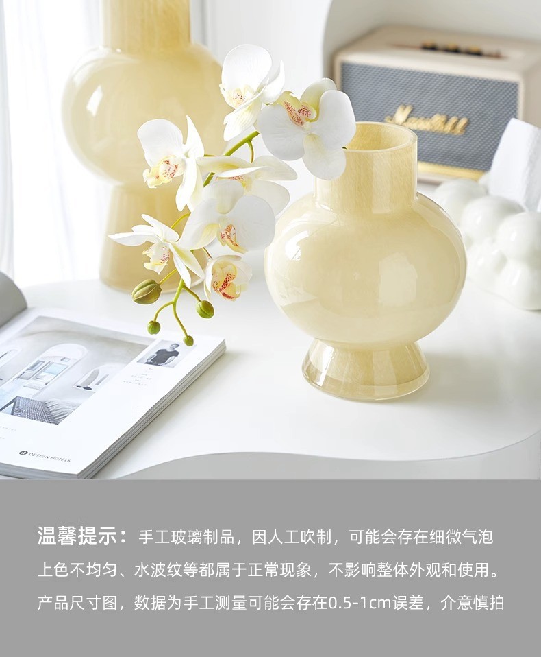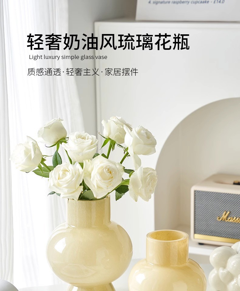 奶油风芬顿中古花瓶玻璃高级感琉璃轻奢ins风高颜值插花装饰摆件