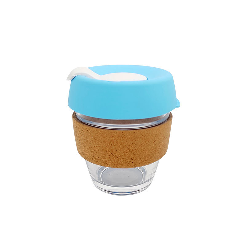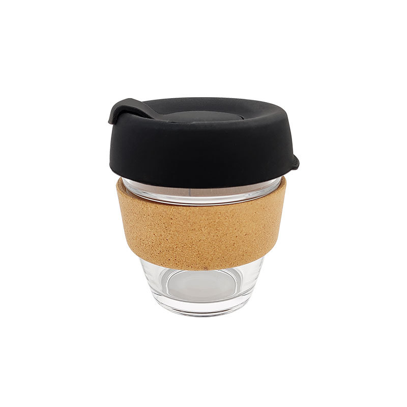 促销礼品爆款软木玻璃杯激光logo 防烫隔热带盖硅胶咖啡杯食品级