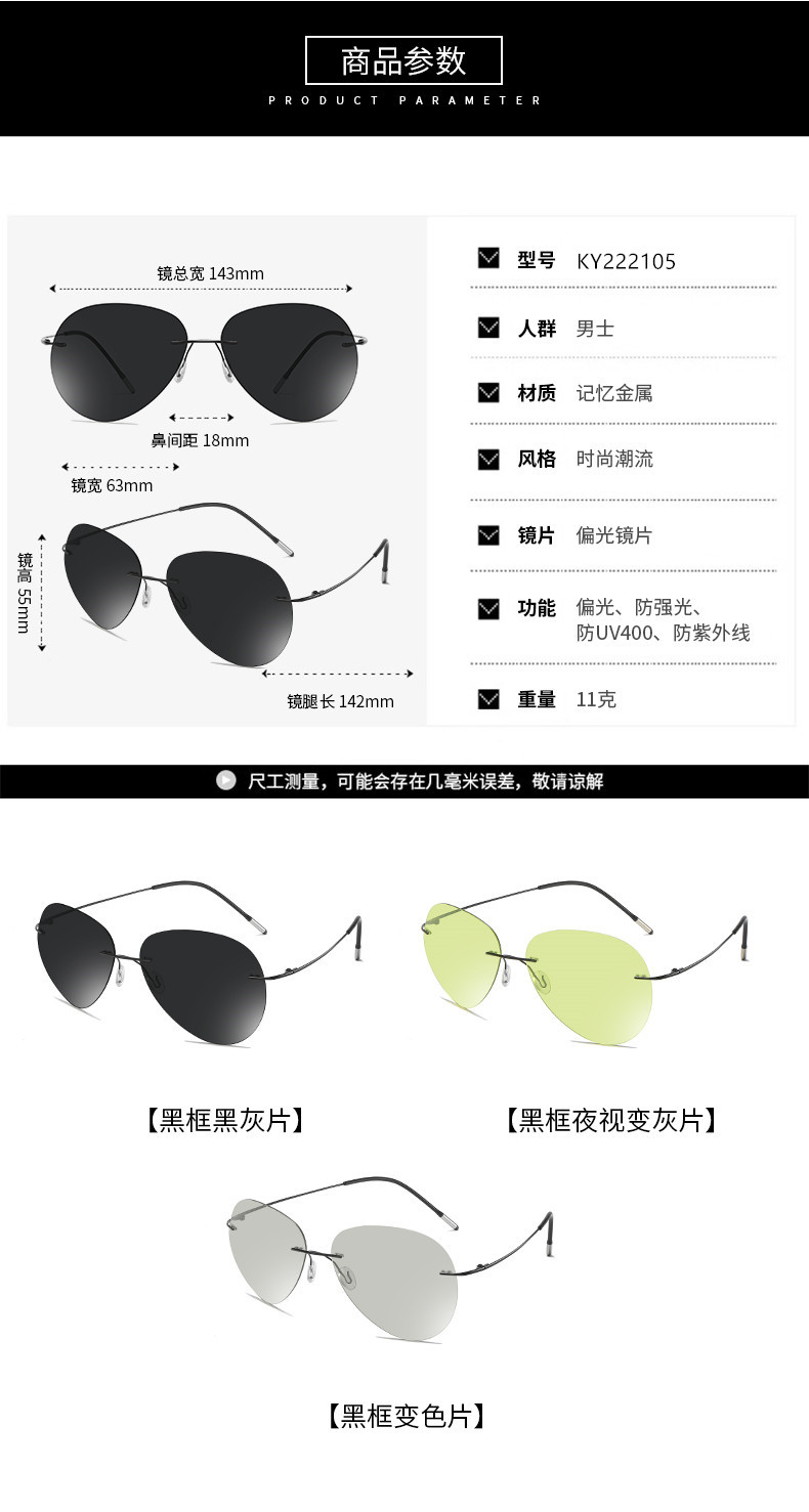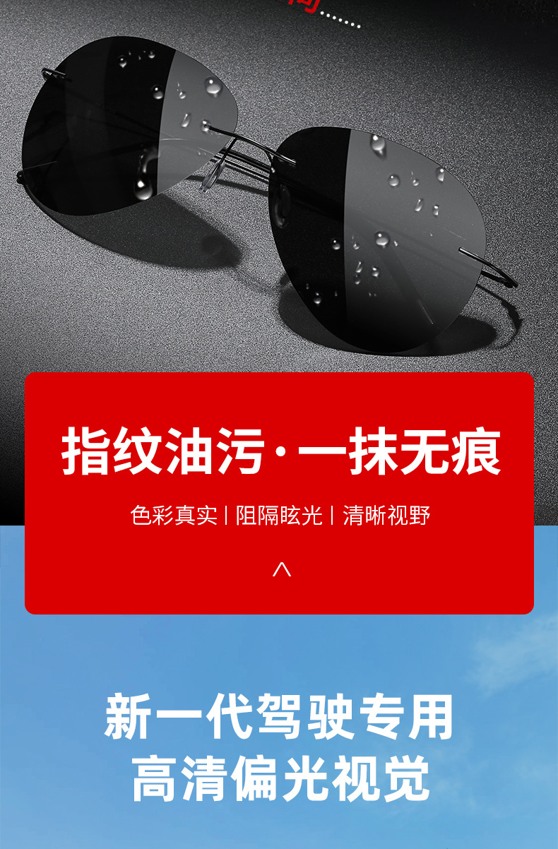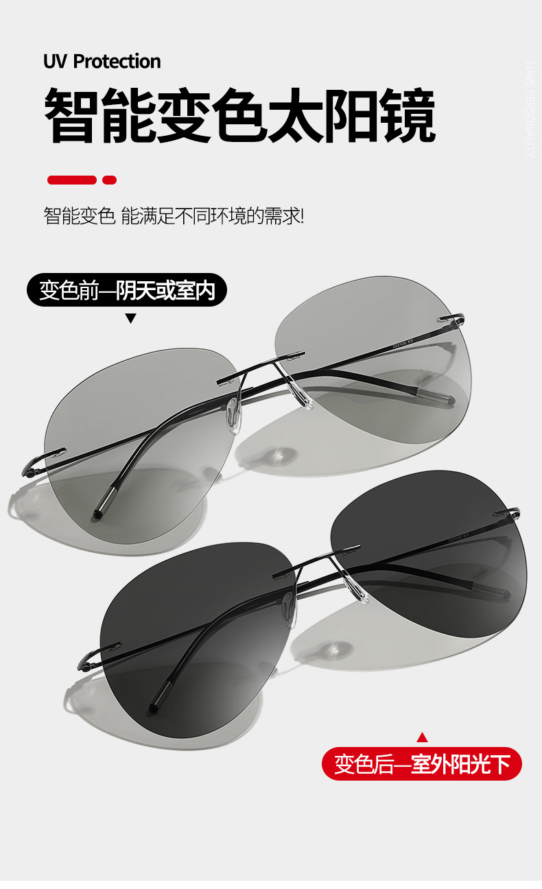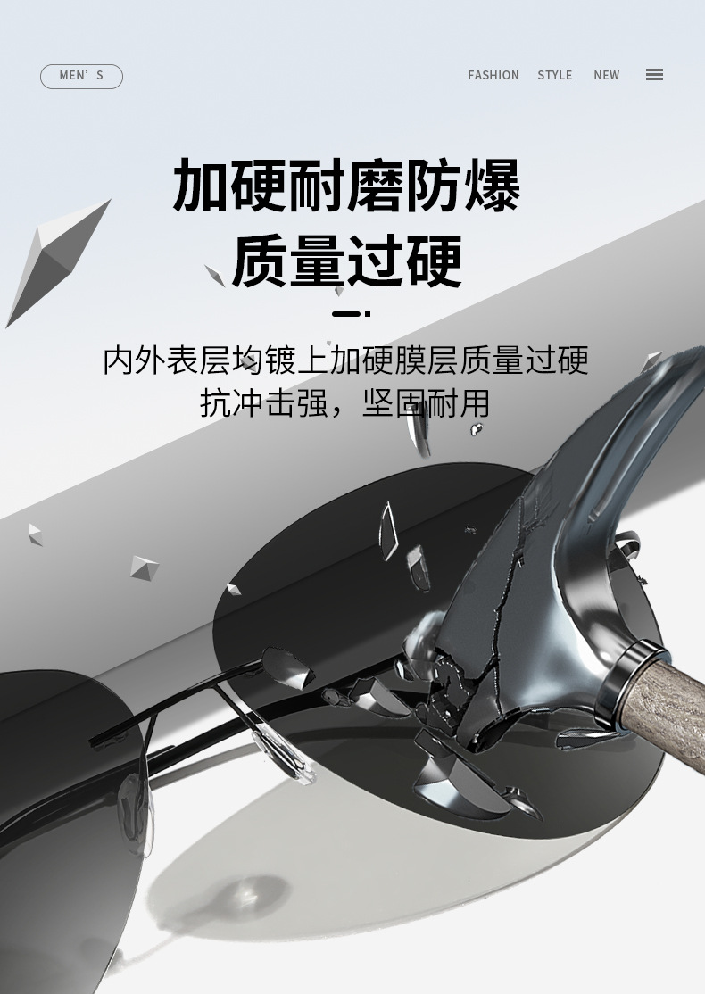 新款超轻蛤蟆镜变色无框太阳镜日夜开车驾驶防紫外线偏光男士墨镜