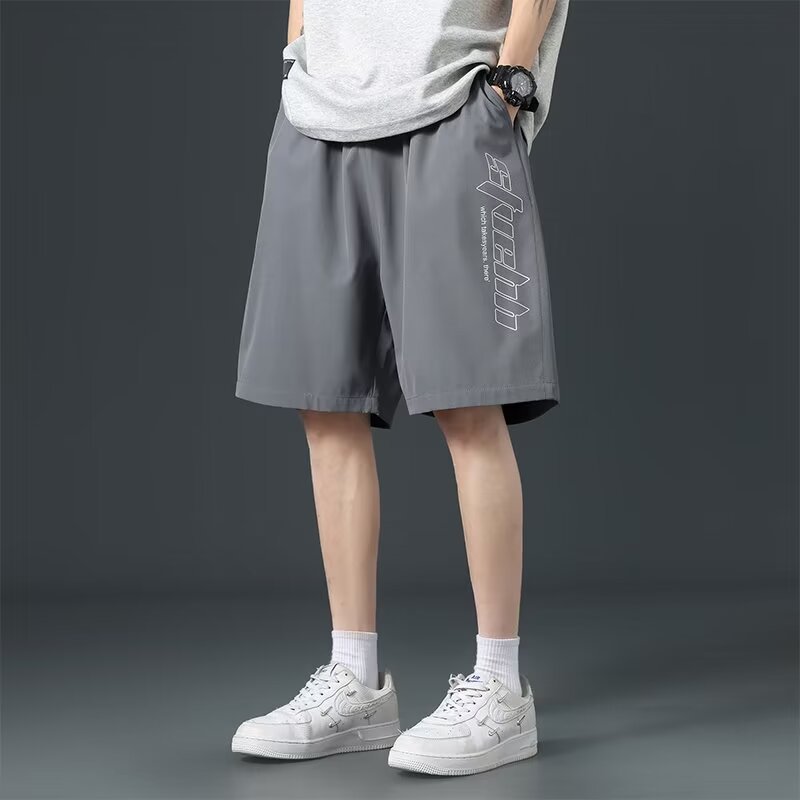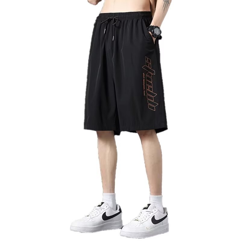外贸厂家冰丝运动短裤男士夏季薄款港风宽松潮流印花青少年大裤衩