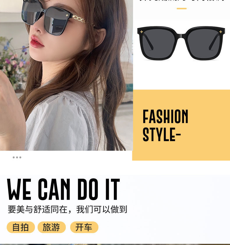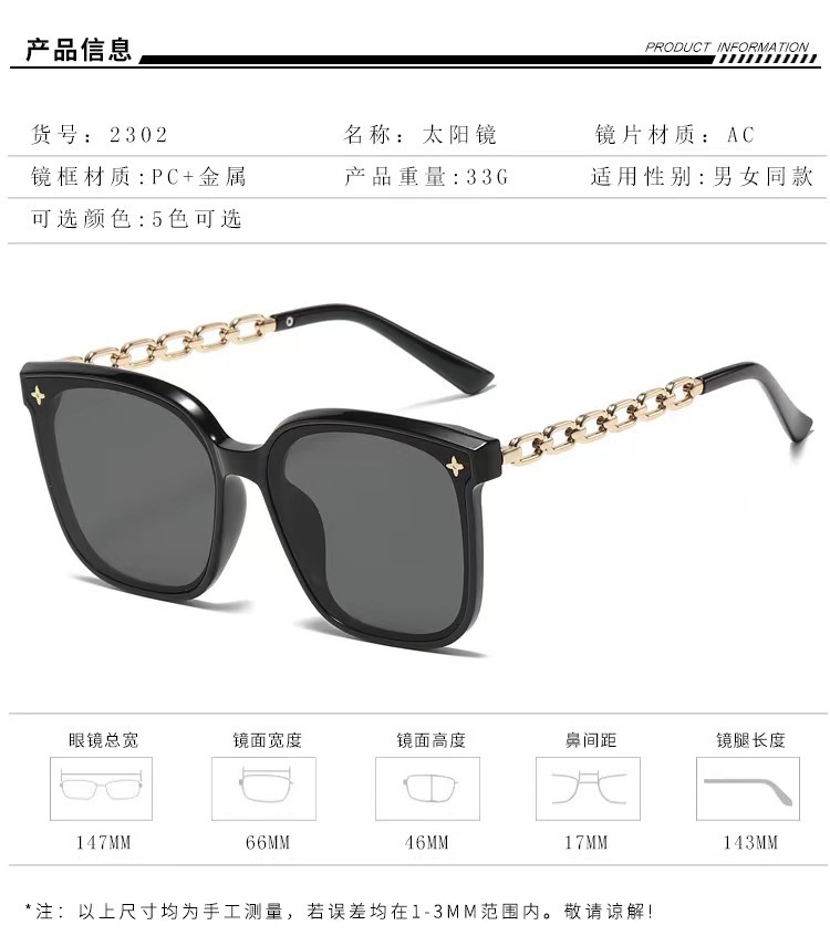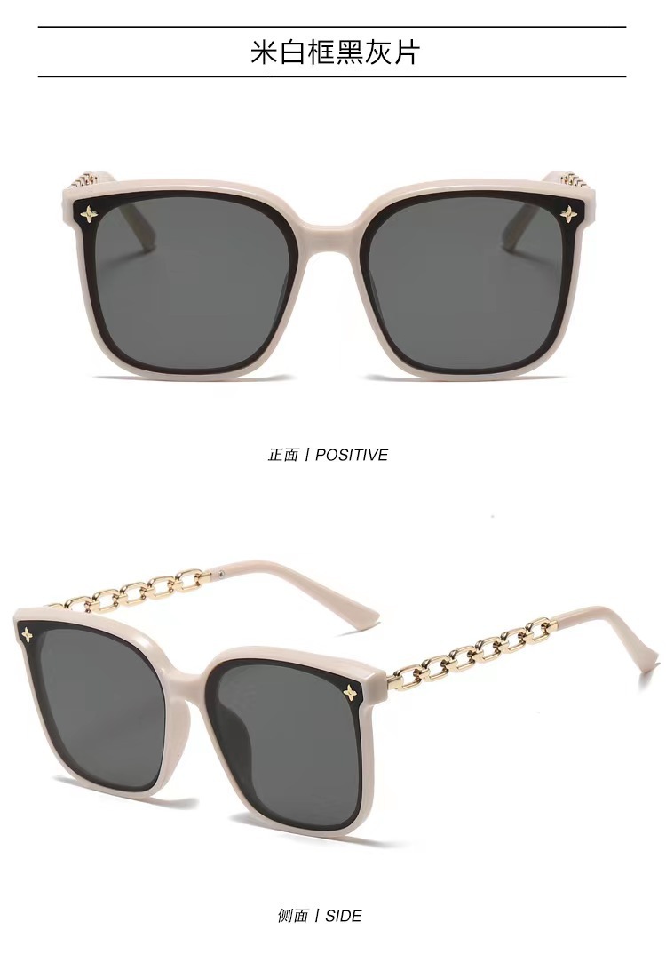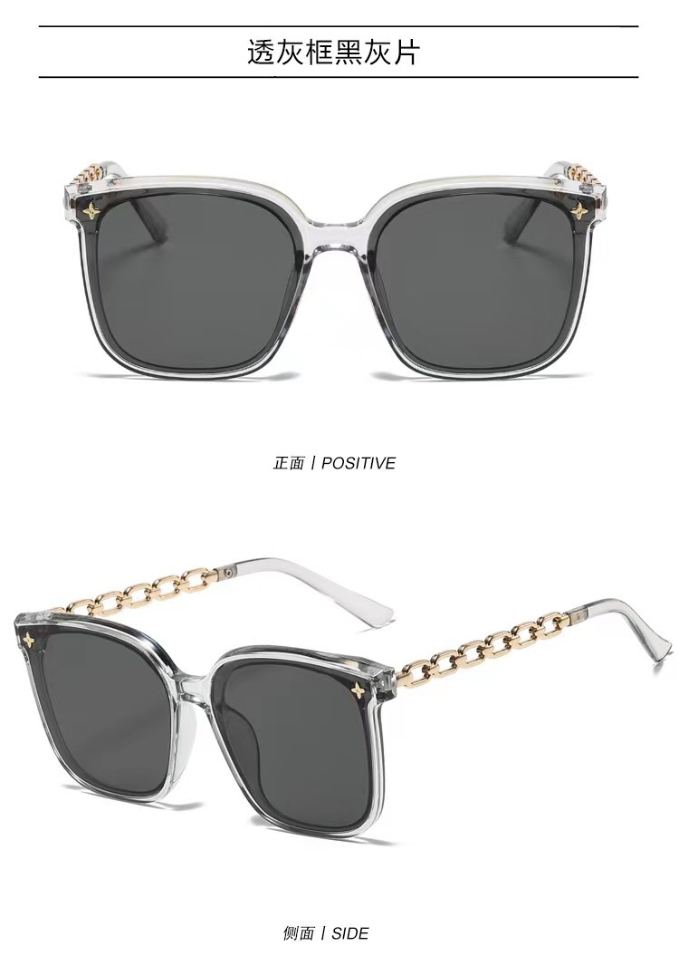 2025新款方形大框金属镜腿装饰防紫外线遮阳墨镜潮流女士太阳镜