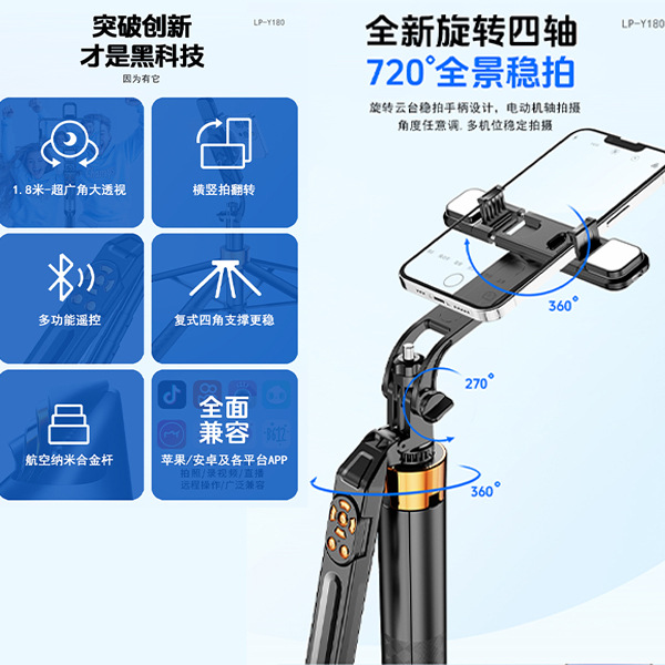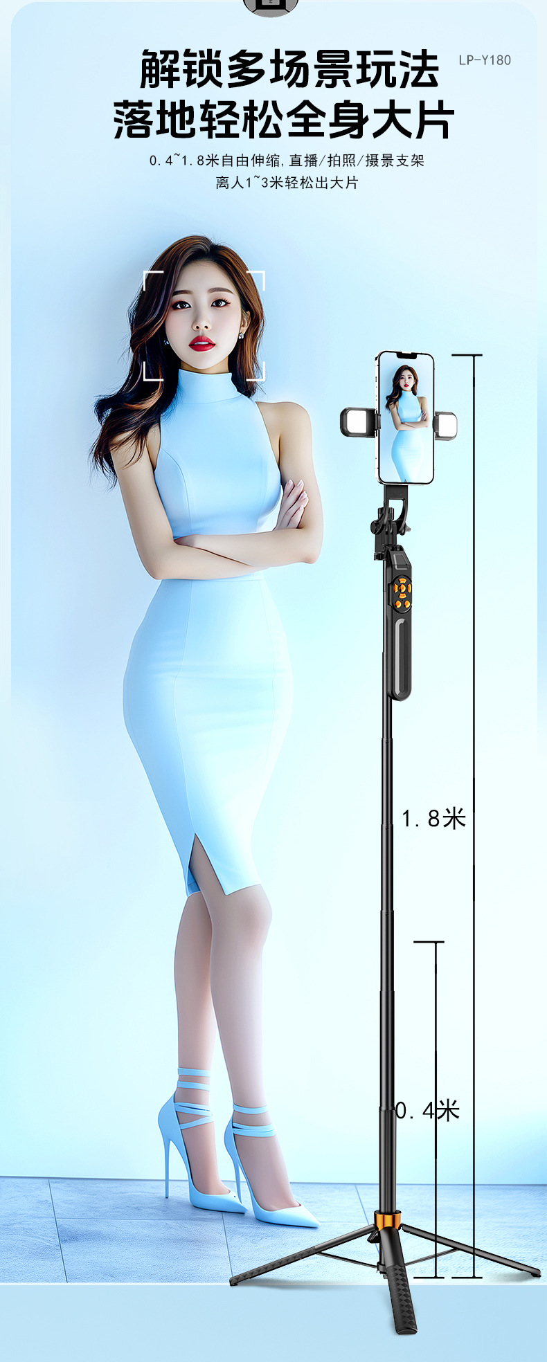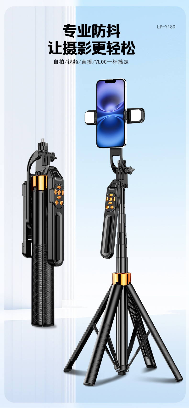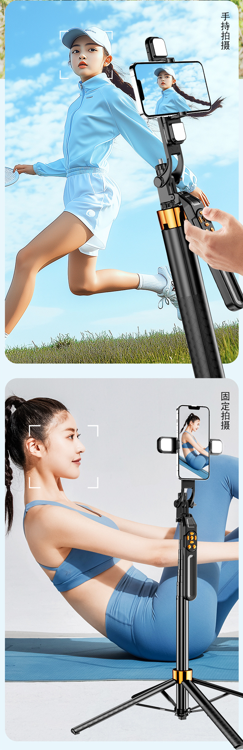 落地手机自拍四脚支架带蓝牙自拍器自拍杆防抖1.8米可伸缩自拍杆