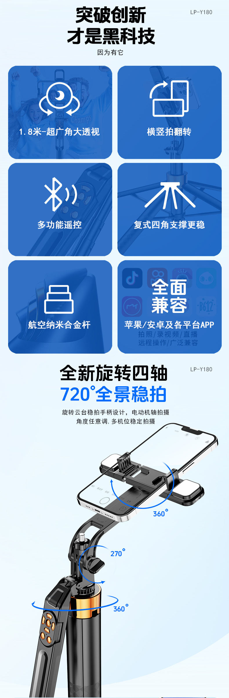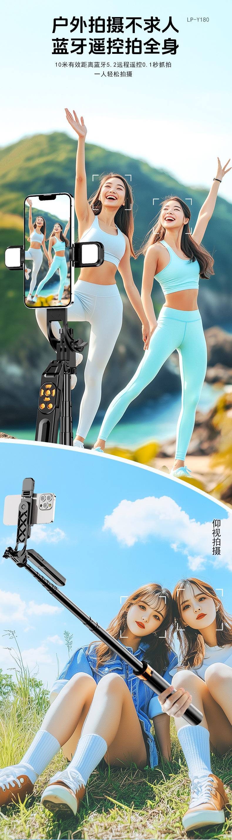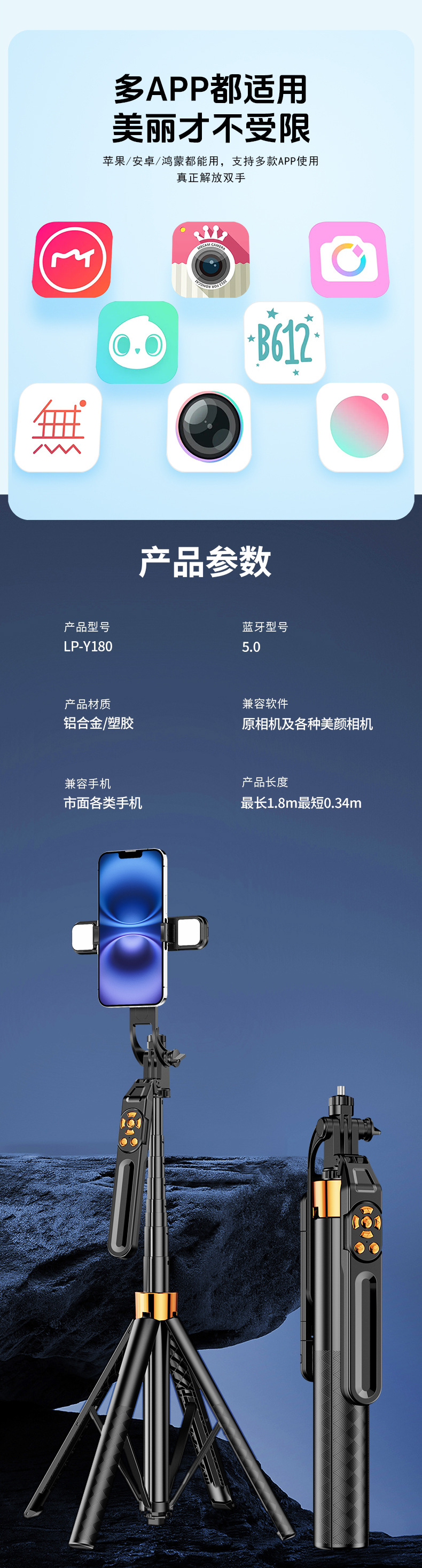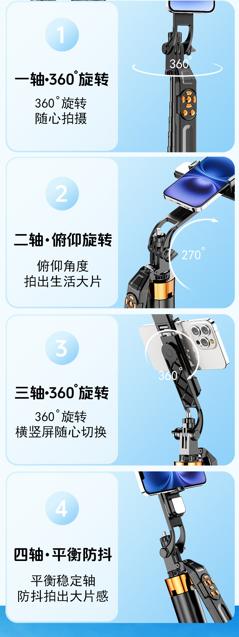 落地手机自拍四脚支架带蓝牙自拍器自拍杆防抖1.8米可伸缩自拍杆