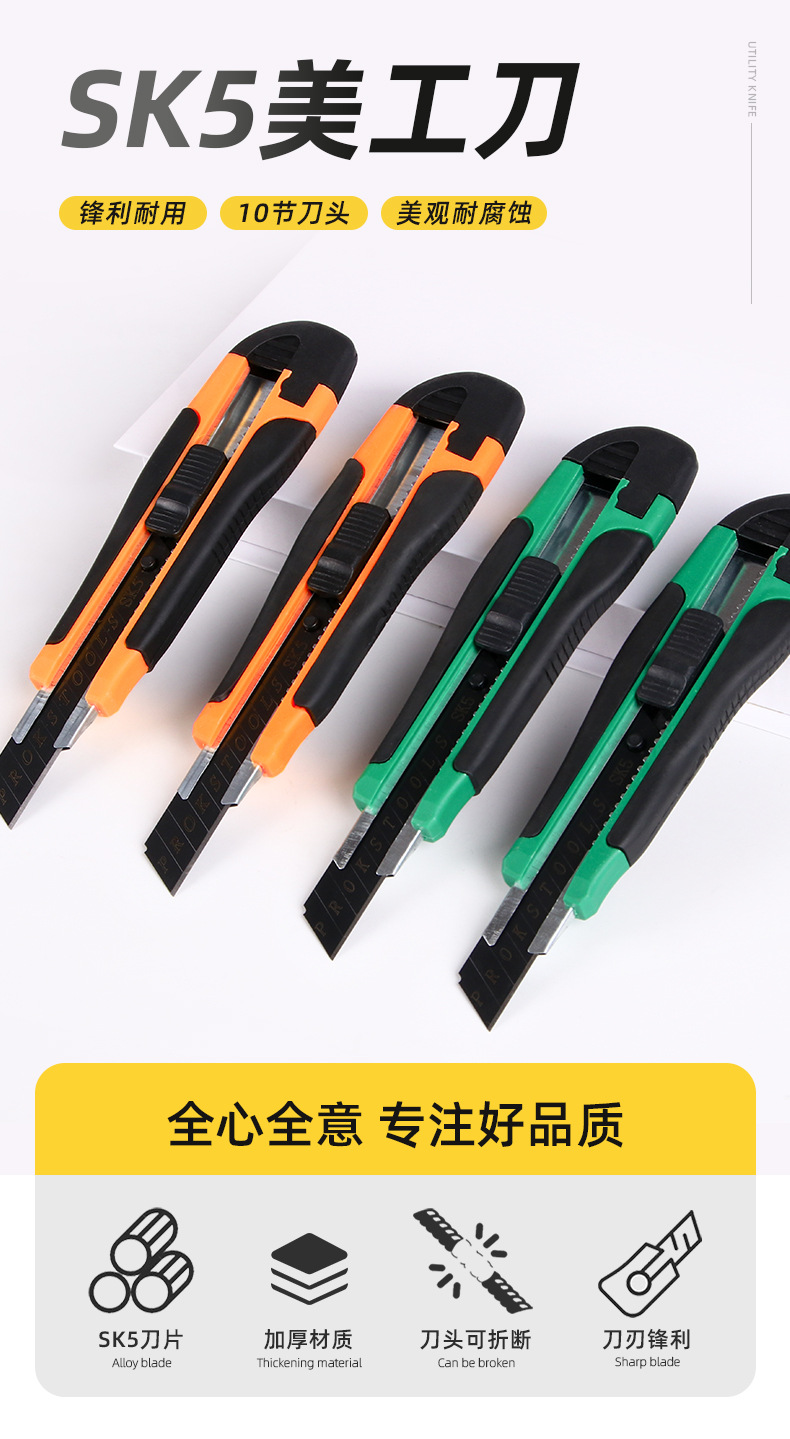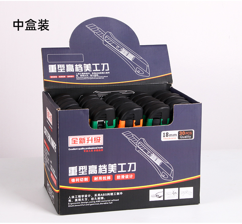 大号美工刀18mm壁纸刀裁纸墙纸工具刀快递开箱刀加厚黑刃美术刀