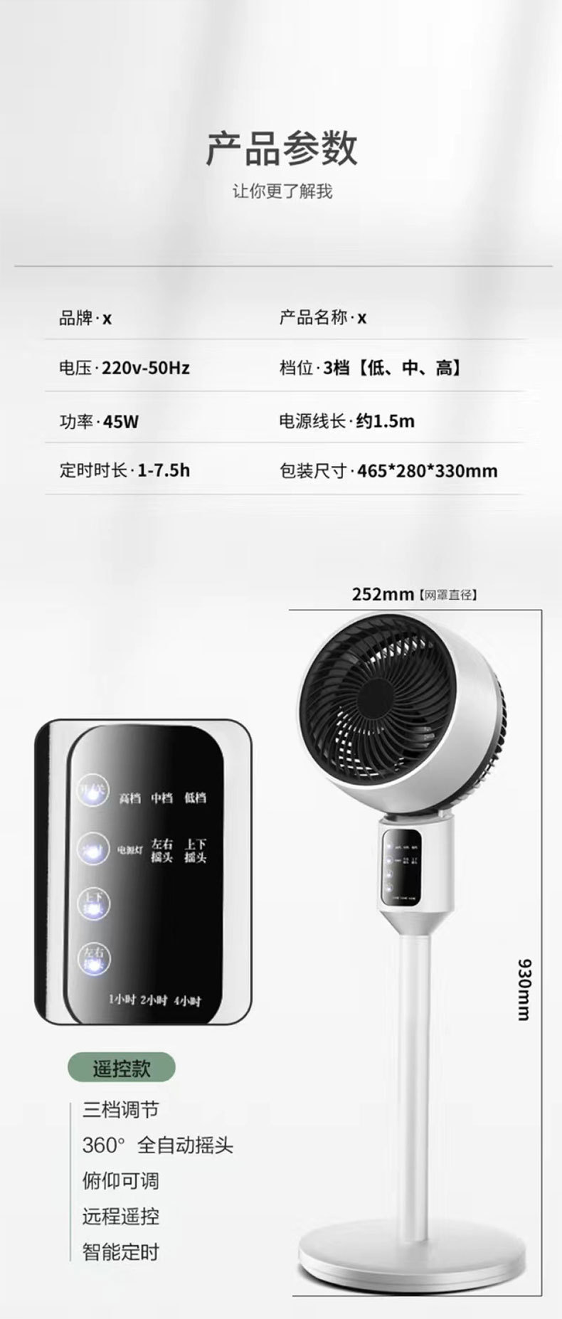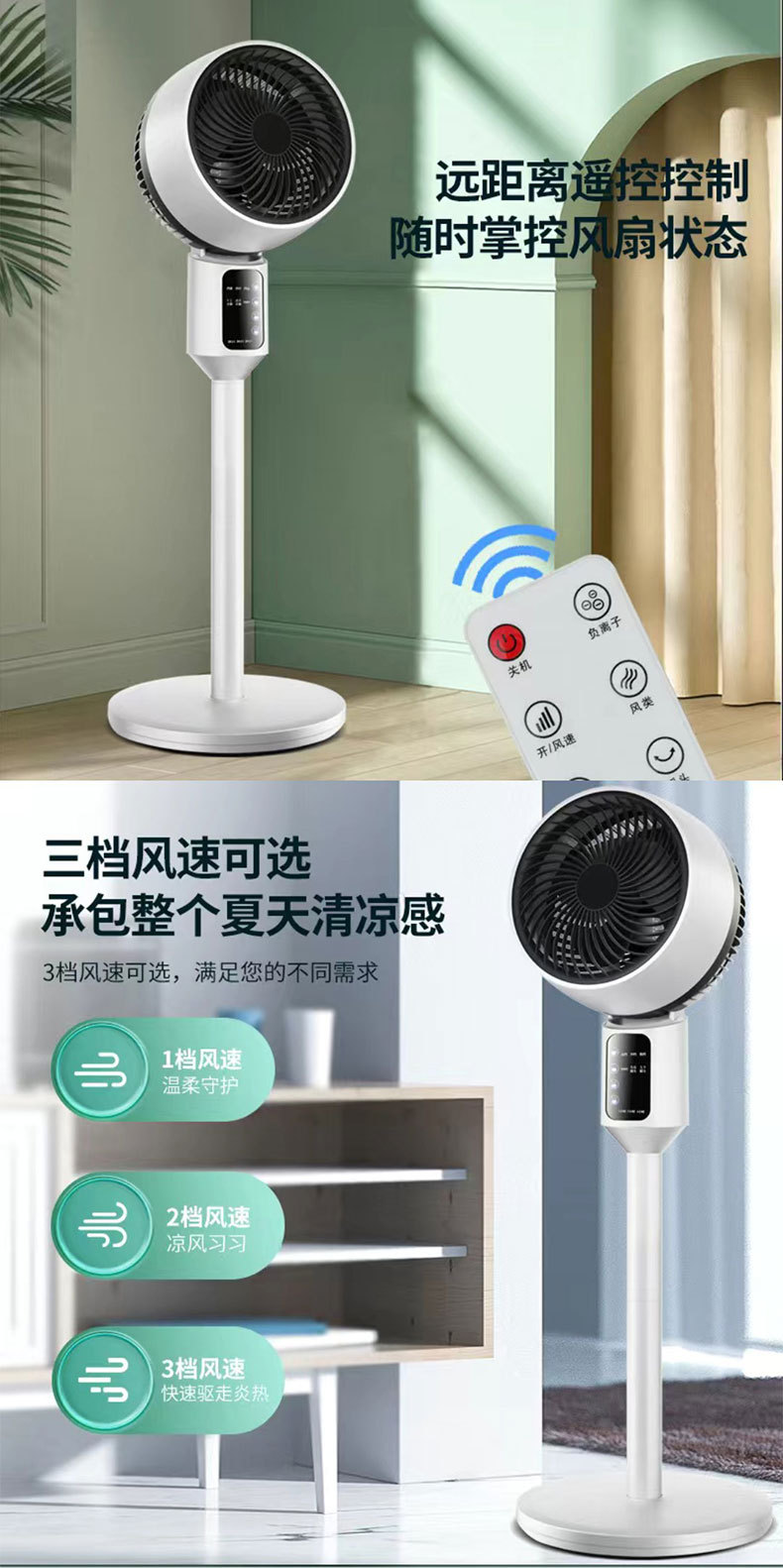 电风扇家用空气循环扇立式三档摇头落地扇静音大风量家用电风扇空