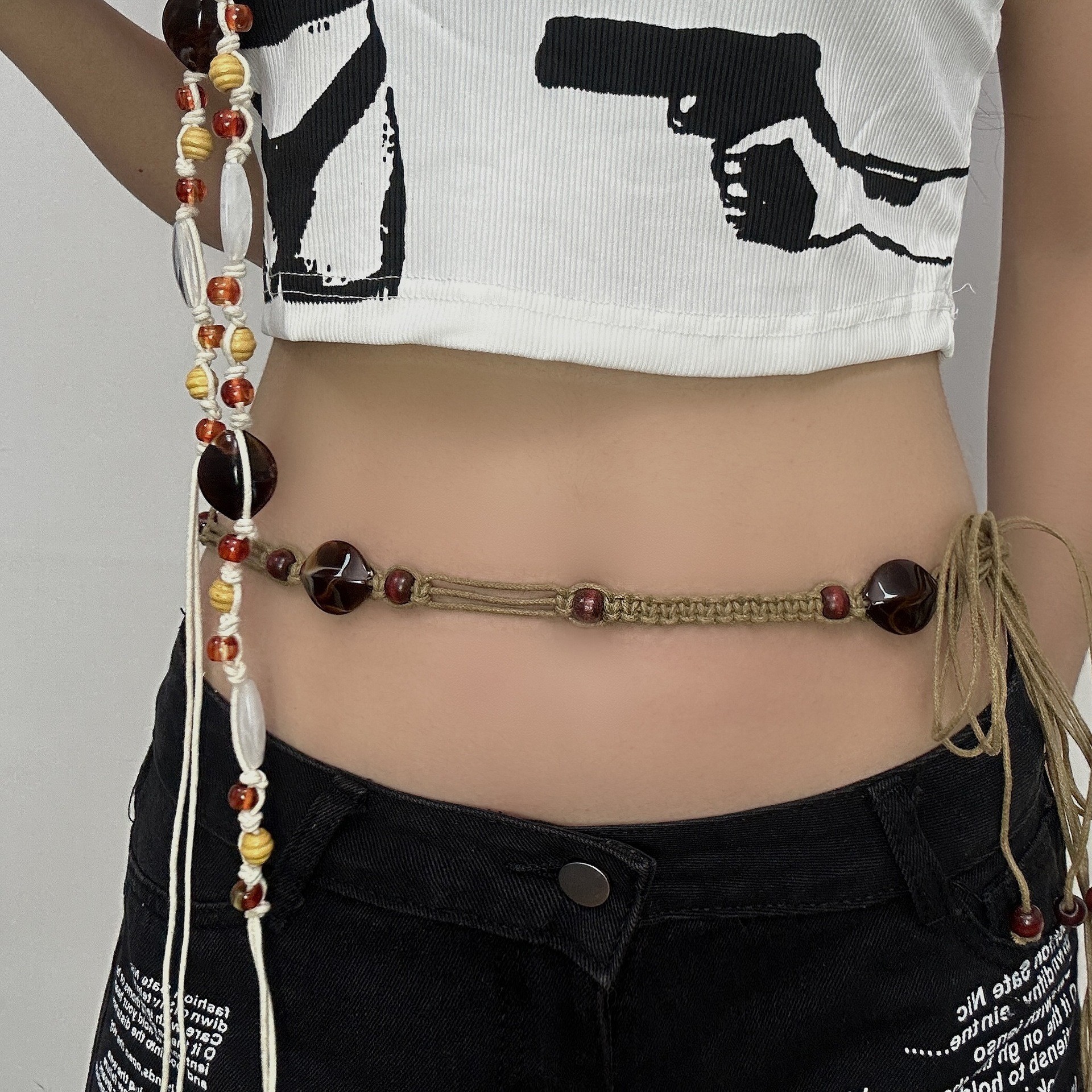 新款文艺复古民族风绳编织腰带波西米亚风休闲收腰装饰连衣裙腰绳