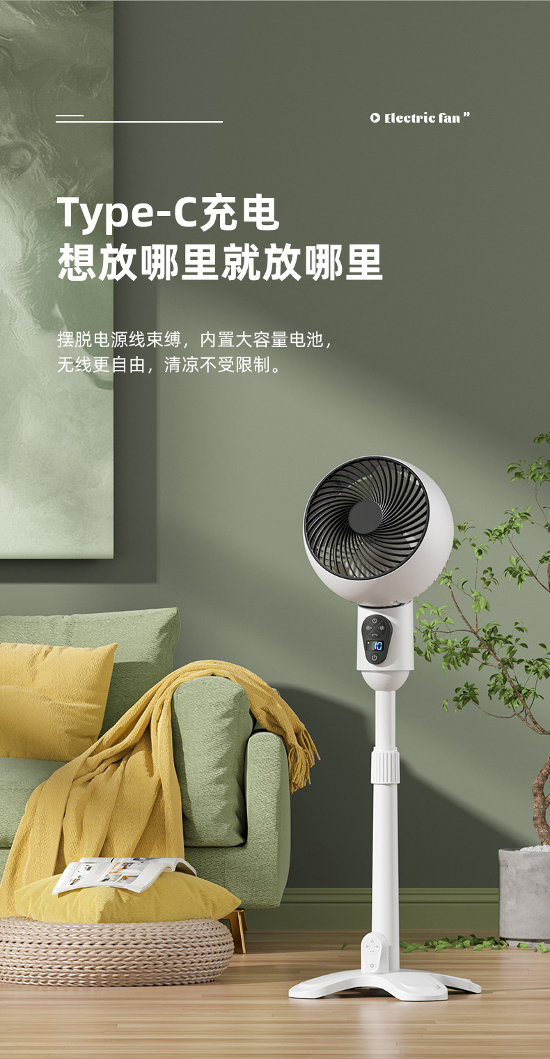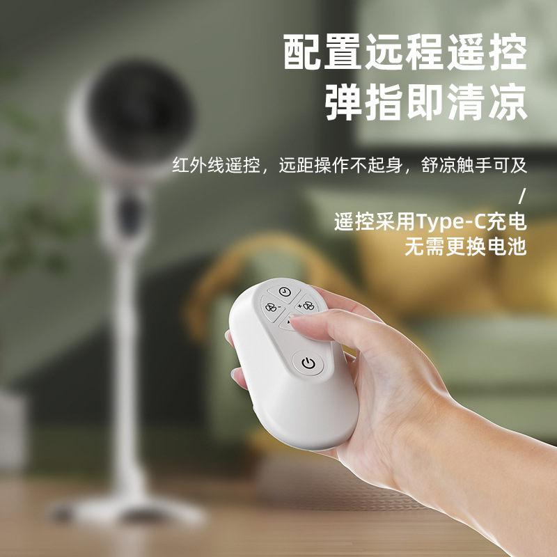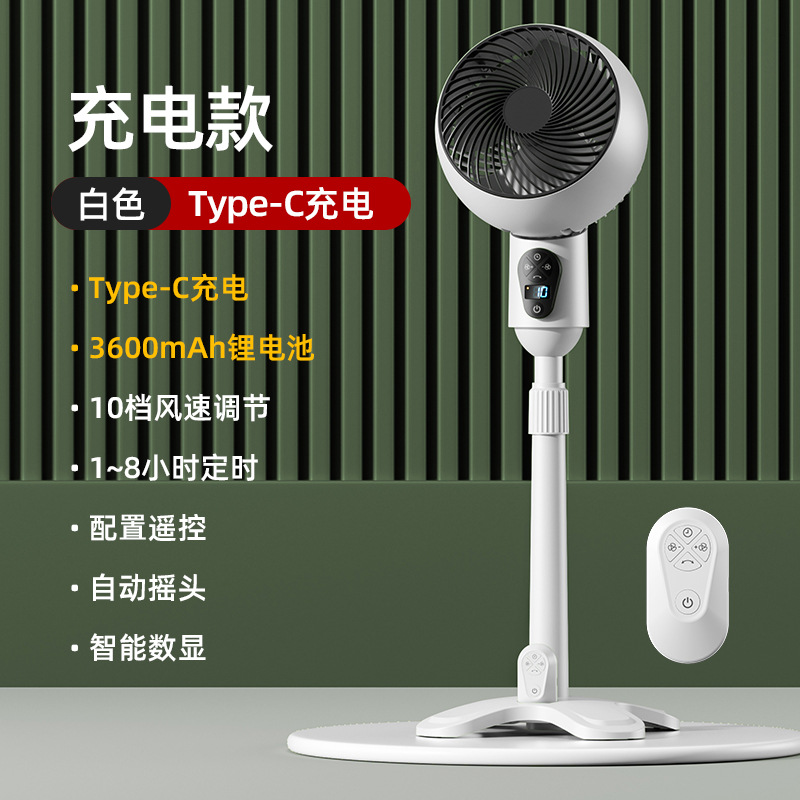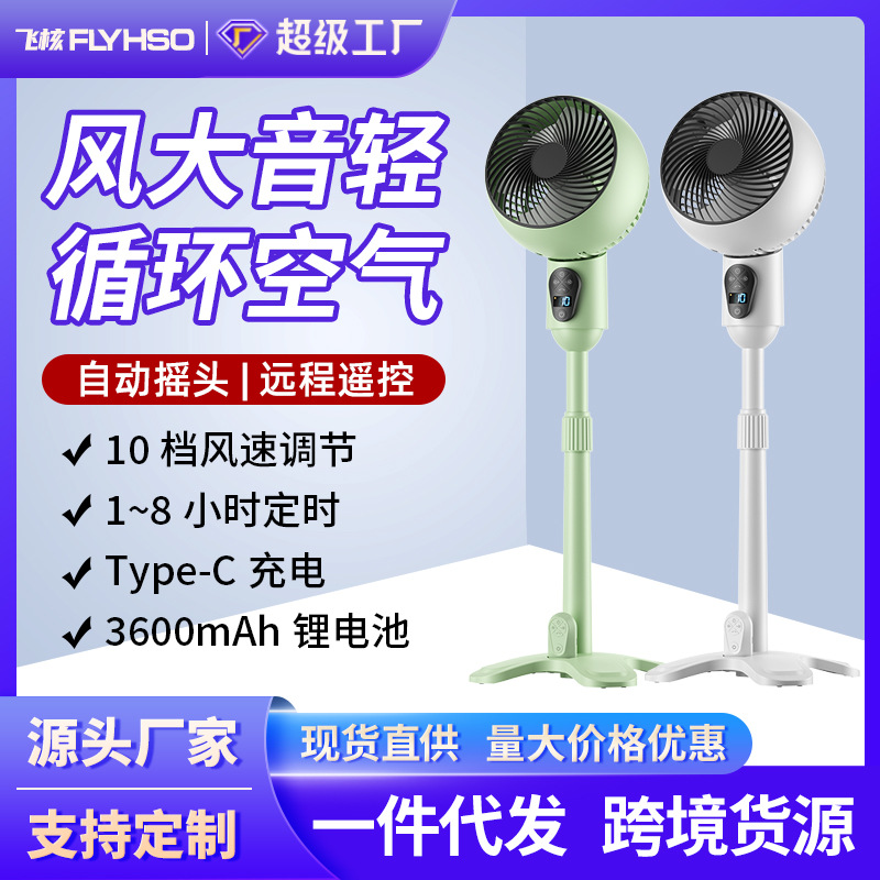 跨境新款空气循环扇USB落地扇充电式遥控摇头家用办公大风力风扇