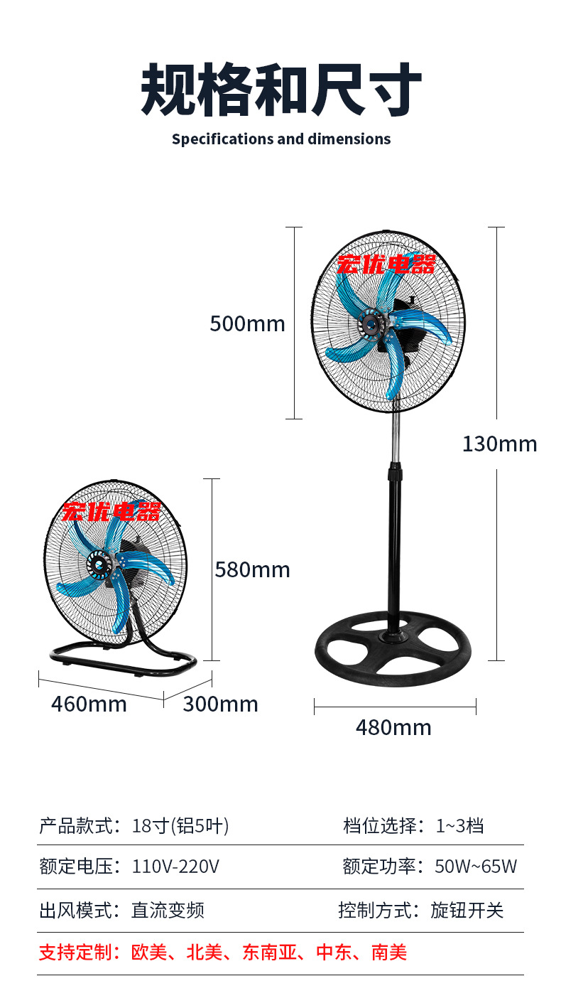 厂家直销18寸工业落地扇三合一摇头台立式扇壁挂南美110V电风扇批