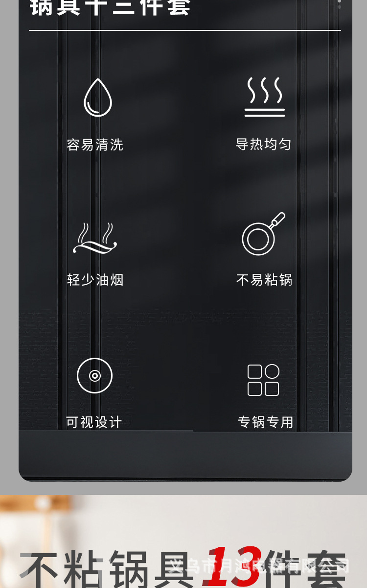 十三件套锅具铲子不粘汤锅奶锅煎锅多件套装麦饭石锅跨境礼品批发