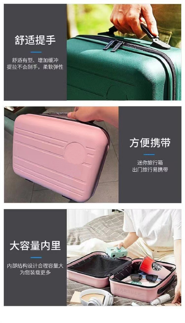 新款手提化妆箱14寸创意节日礼品箱卡通印刷图案旅行收纳小行李箱