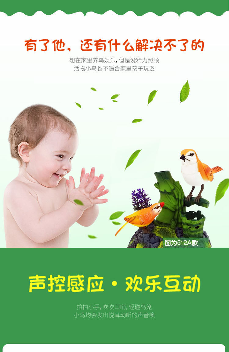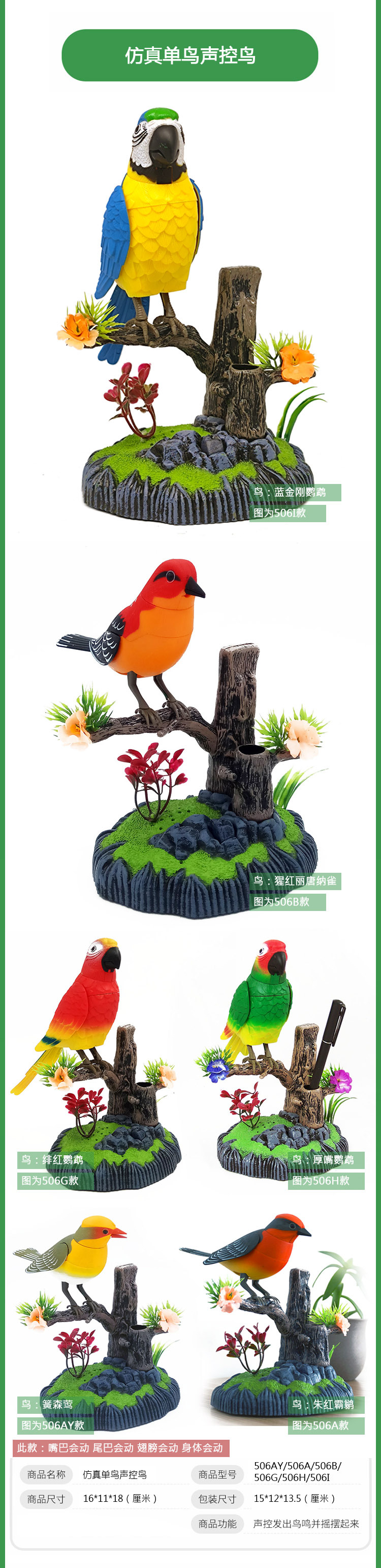 地摊货源声控小鸟厂家趣味仿真小鸟玩具会叫会动假鸟儿童电动感应