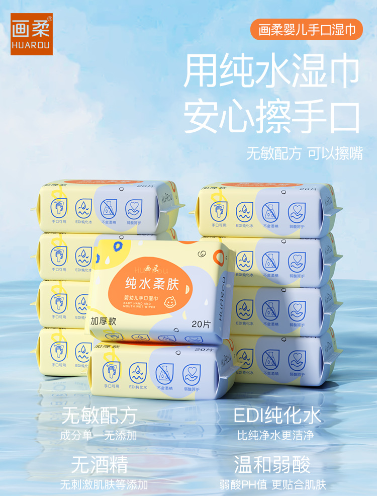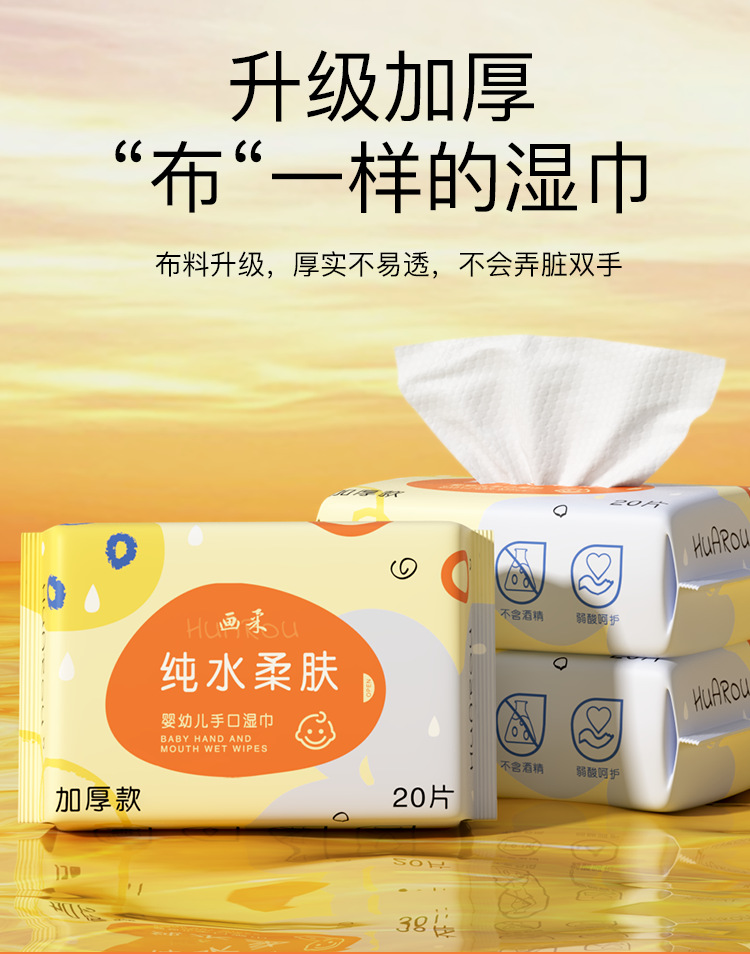 画柔婴儿湿巾宝宝手口专用小学生便携小包儿童湿纸巾随身装20抽