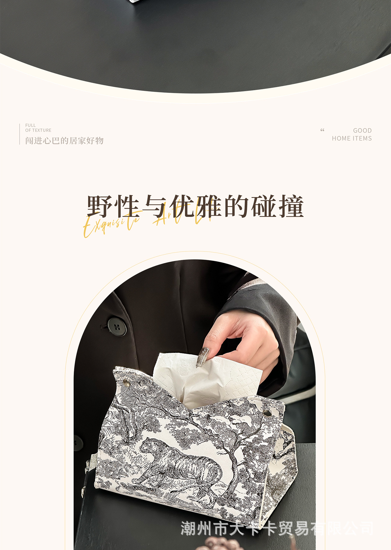 2025新款轻奢复古pu皮革纸巾盒家用客厅高档抽纸盒车载纸巾收纳盒