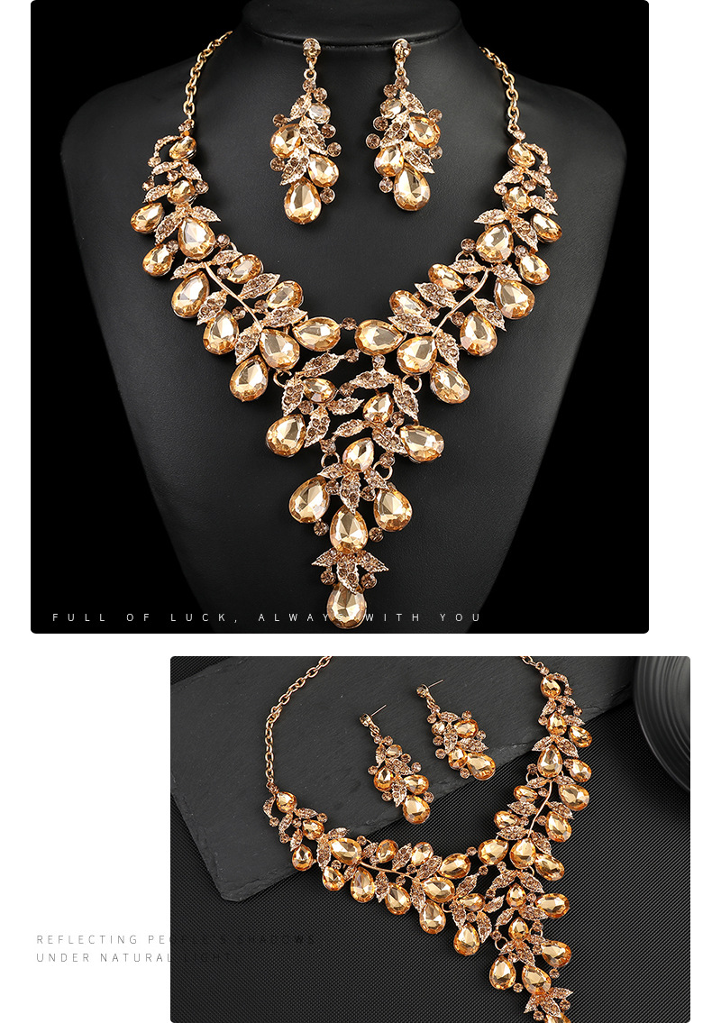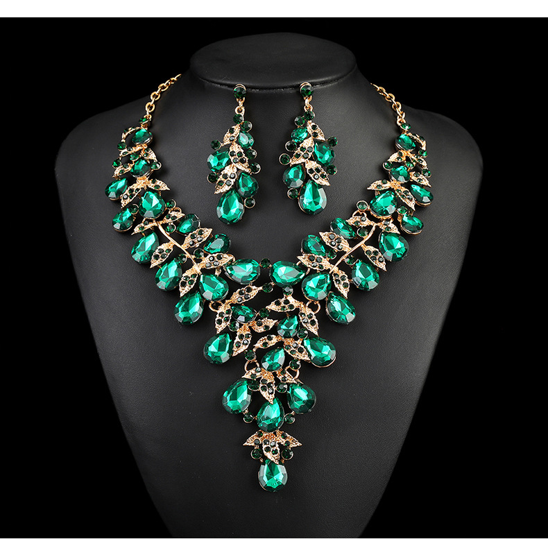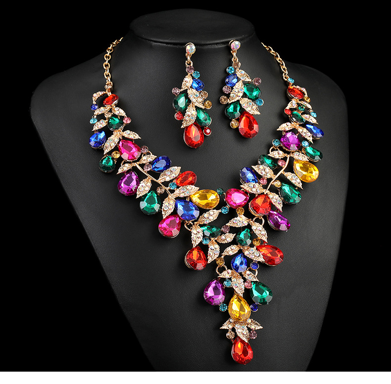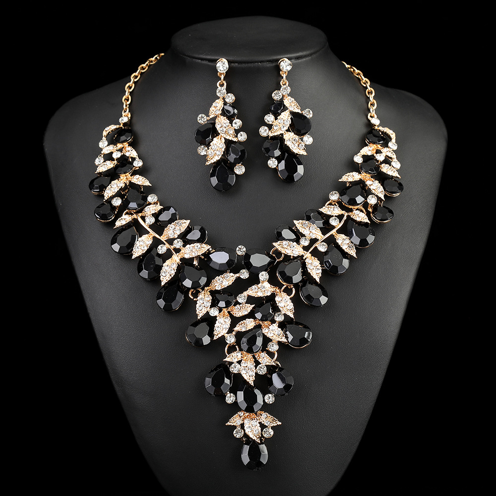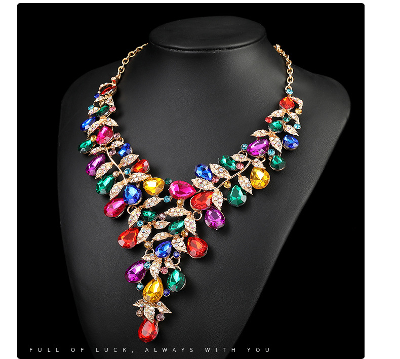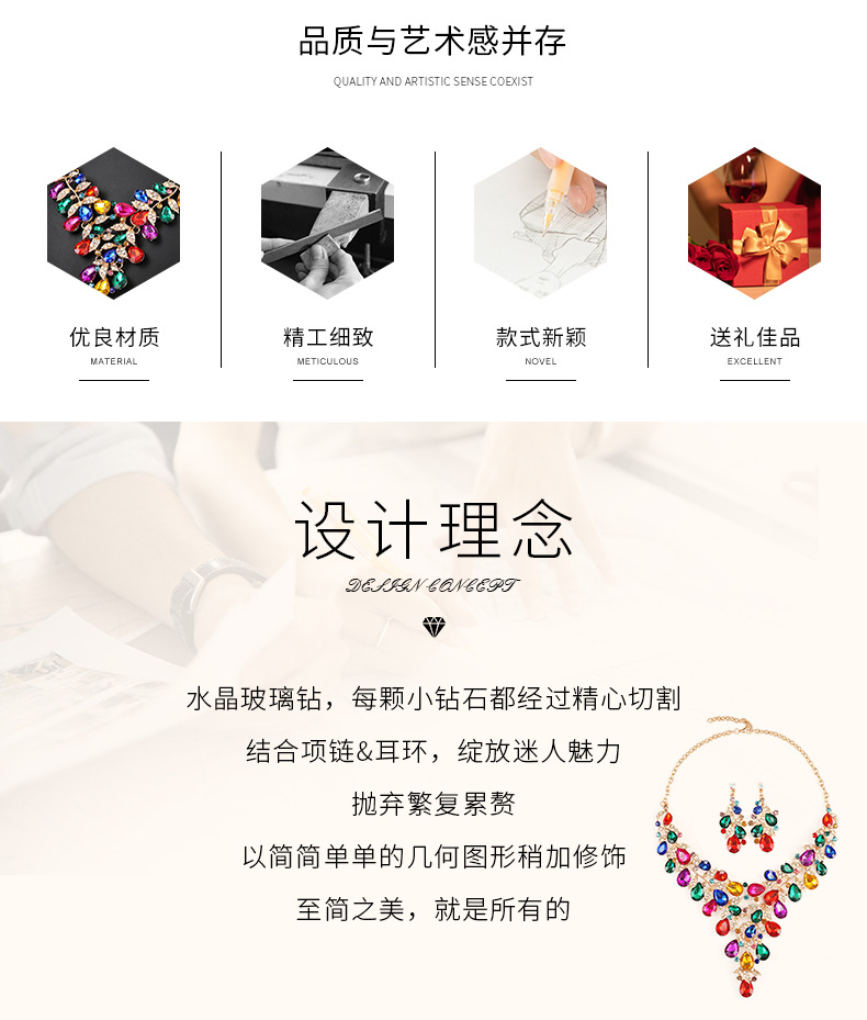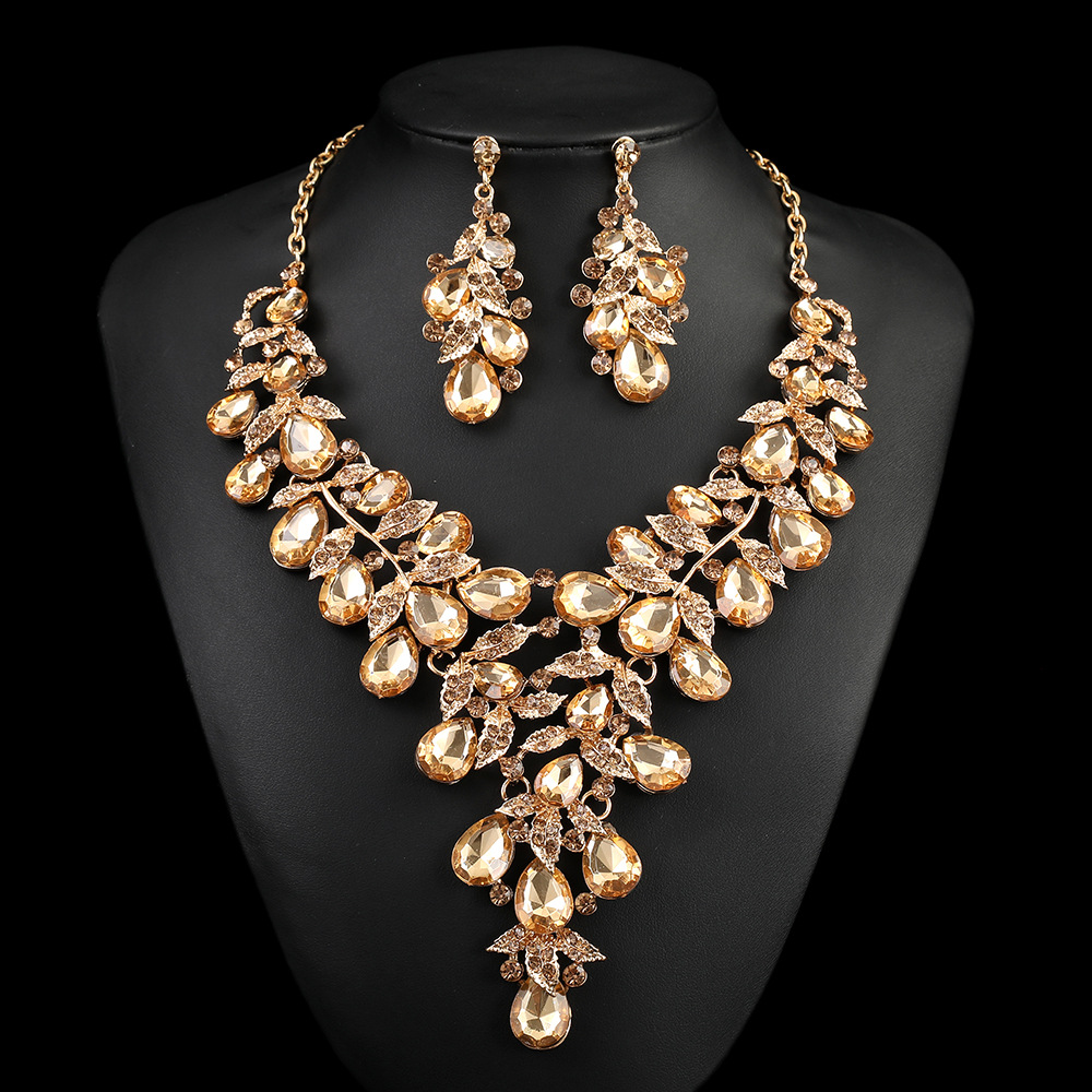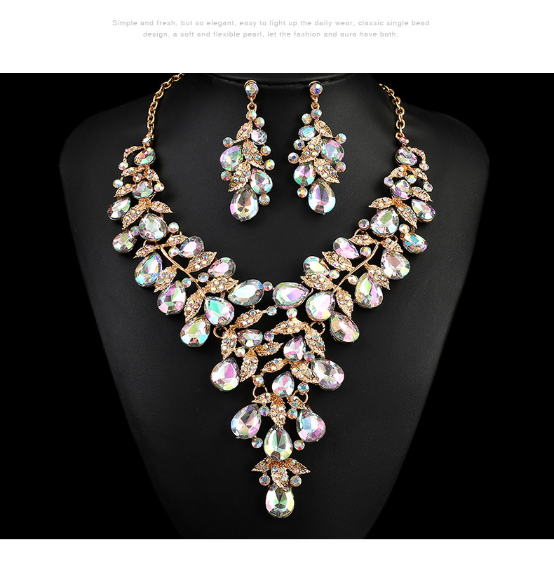 源头工厂欧美配饰夸张复古项链套装女奢华水晶宴会礼服配饰锁骨链
