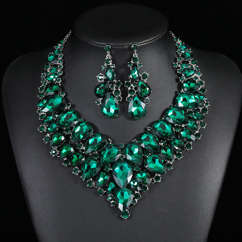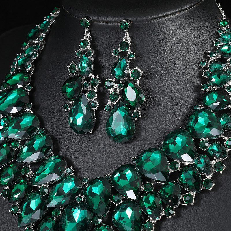 欧美夸张项链耳环套装时尚气质合金水晶玻璃新娘礼服配饰个性跨境