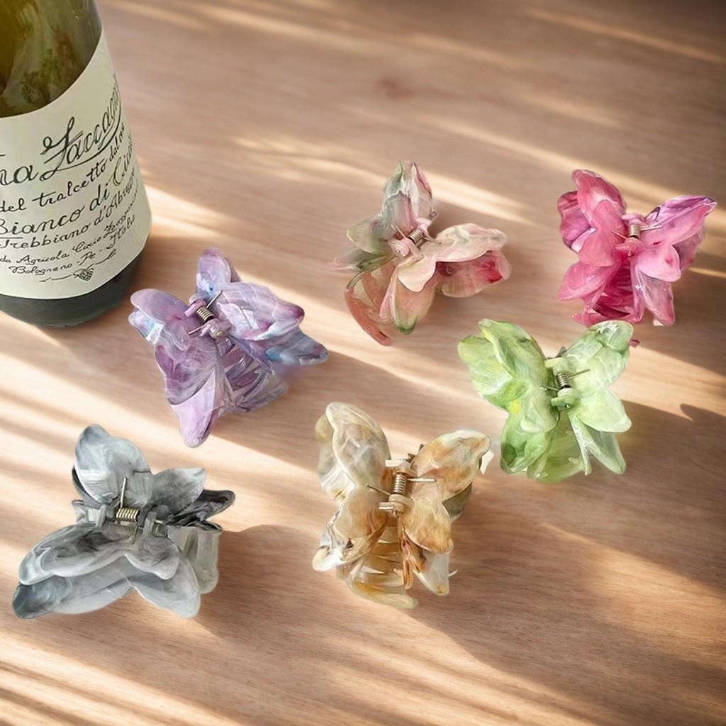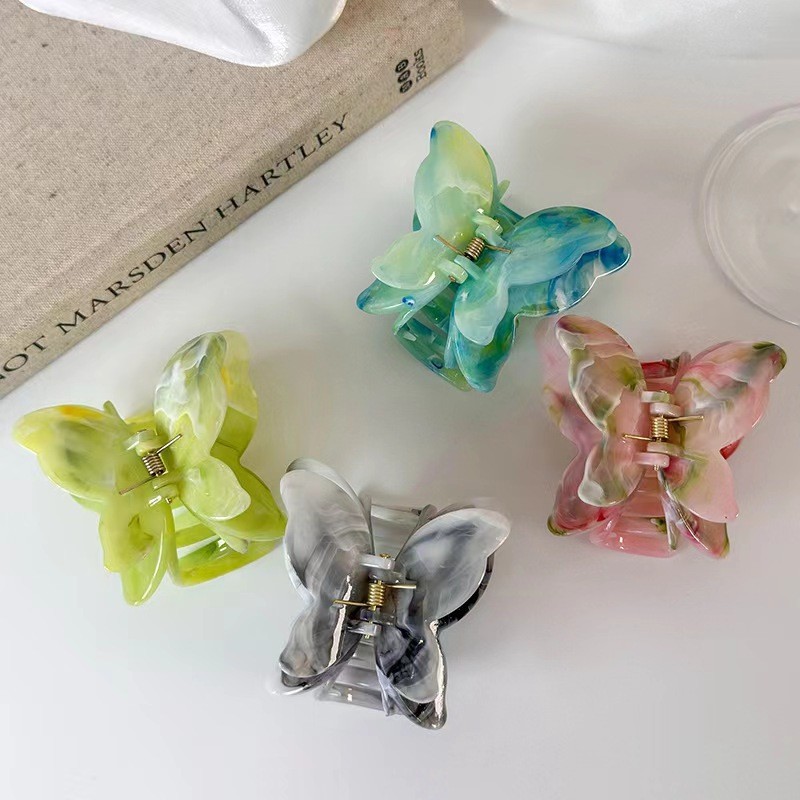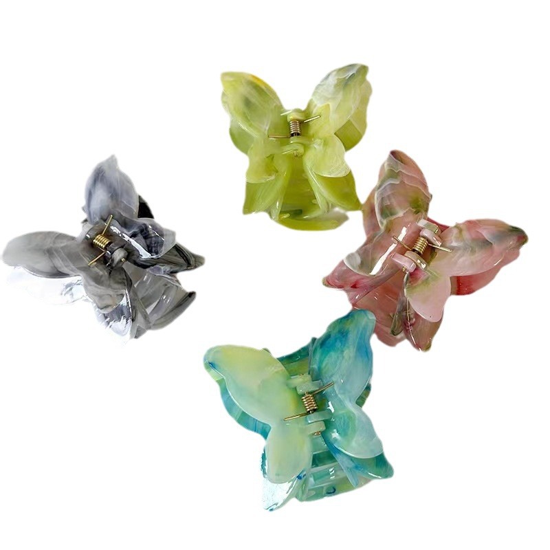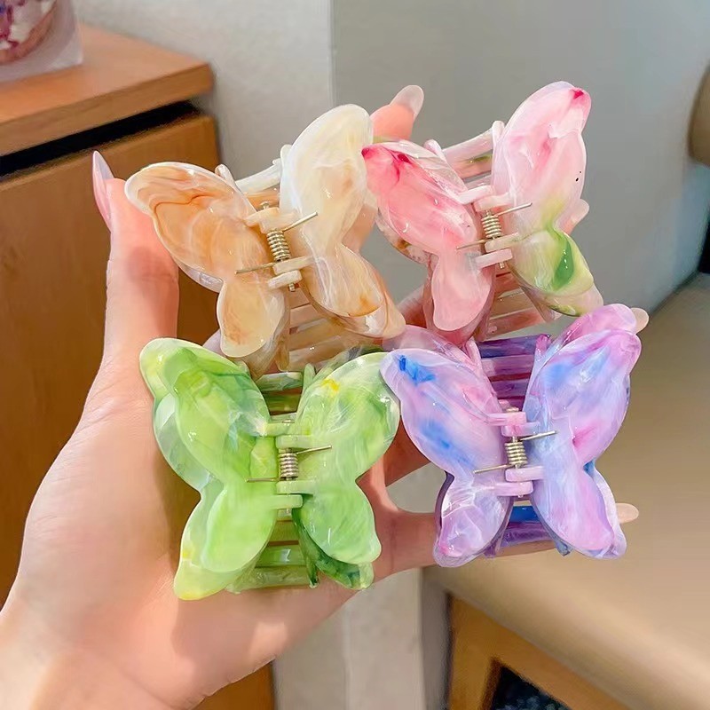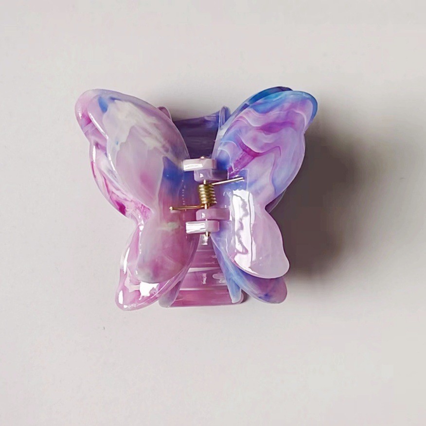 跨境大理石纹双层蝴蝶抓夹气质优雅后脑勺盘发发夹鲨鱼夹发饰饰品
