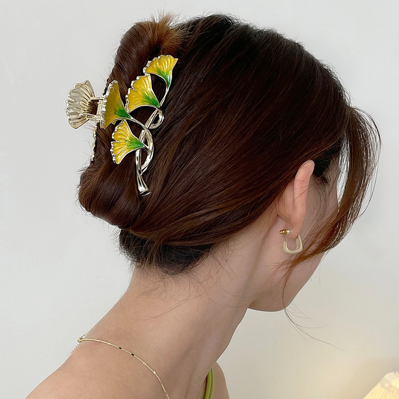 金属银杏树叶抓夹清新秋天新款鲨鱼夹夹子头饰精致古风