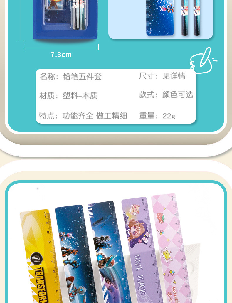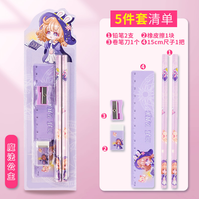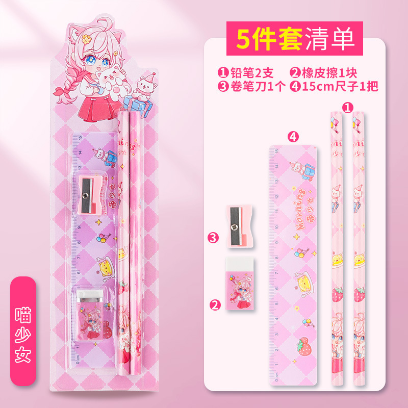 儿童可爱卡通铅笔五件套幼儿园学习用品文具套装小礼物奖品批发