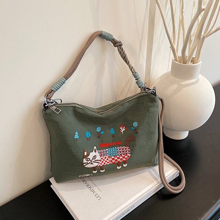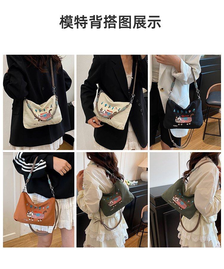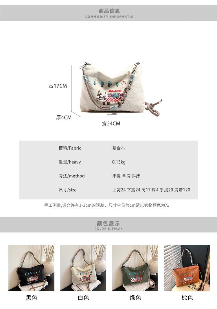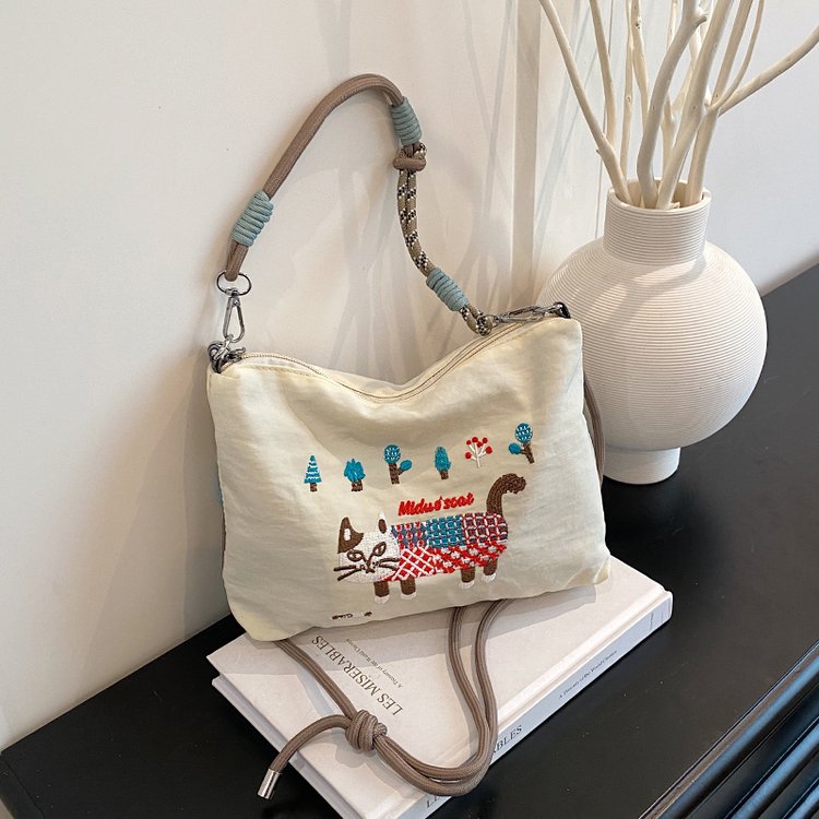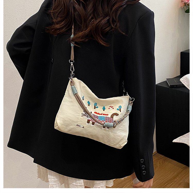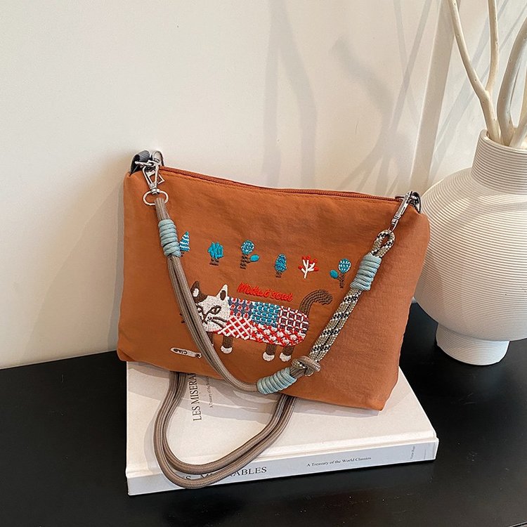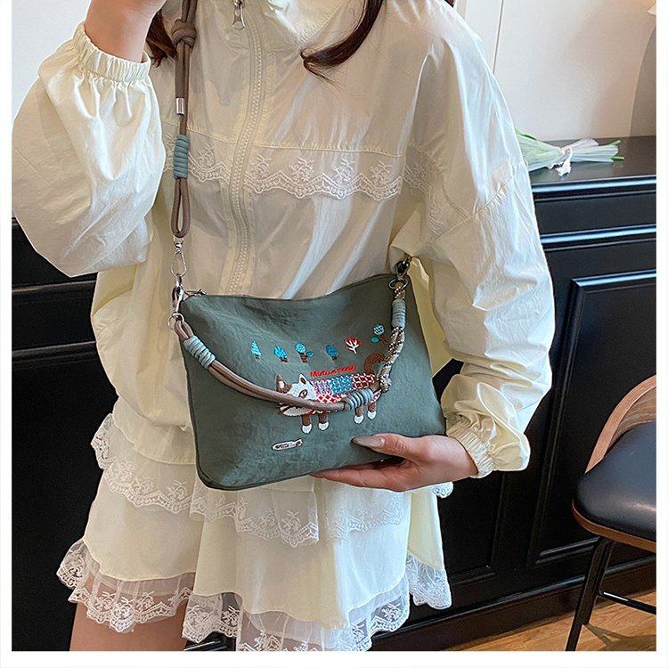 刺绣拉链单肩包女日系小众设计小清新时尚大容量便携收纳包 洗漱