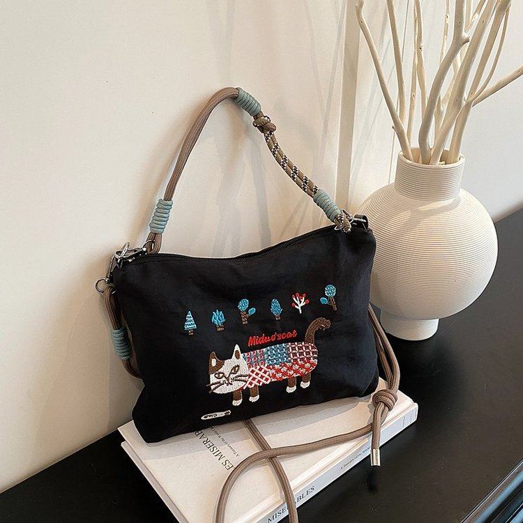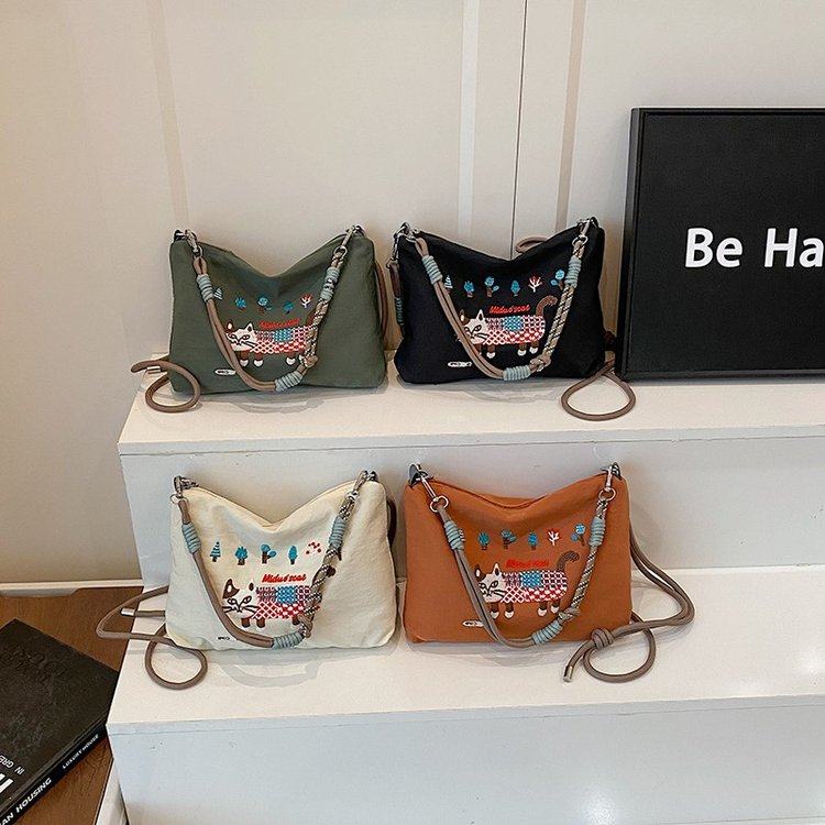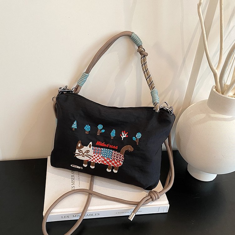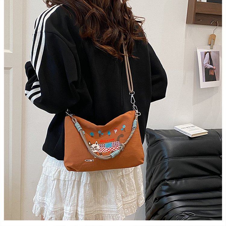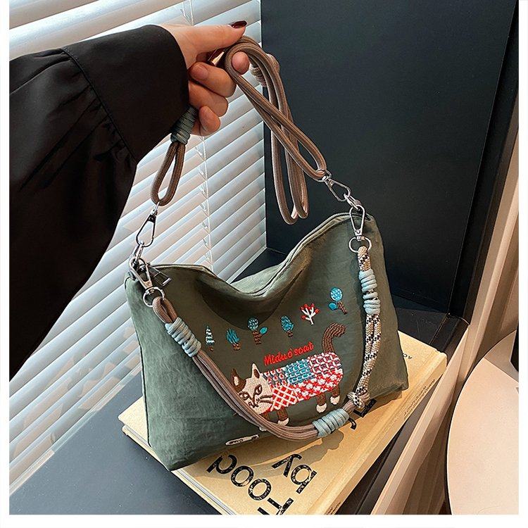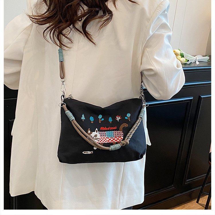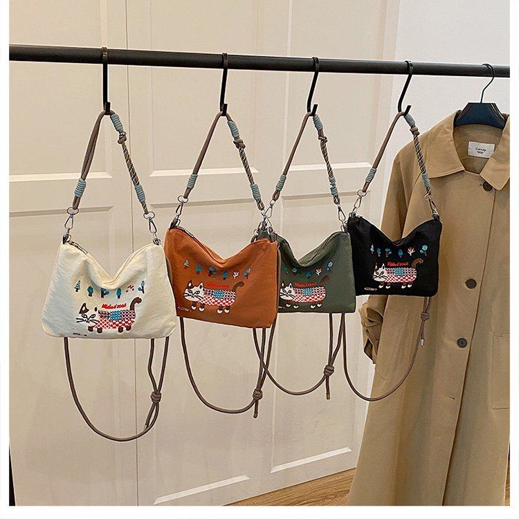刺绣拉链单肩包女日系小众设计小清新时尚大容量便携收纳包 洗漱
