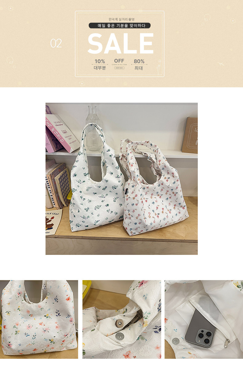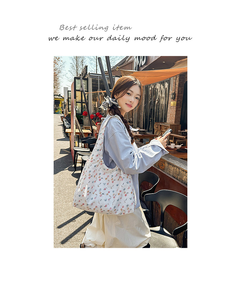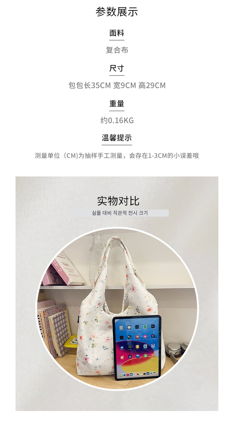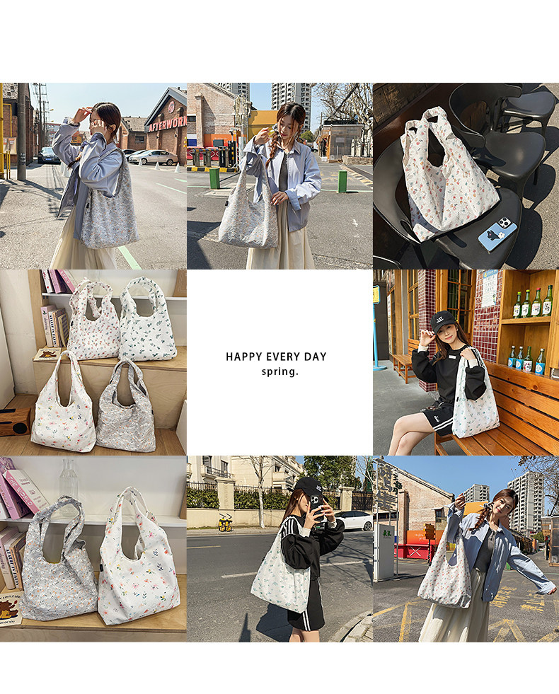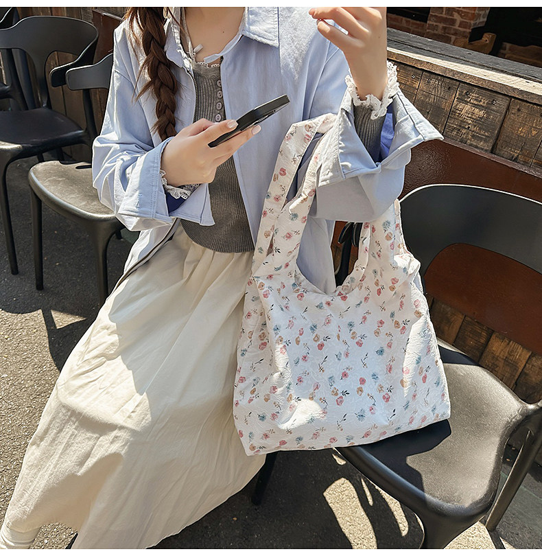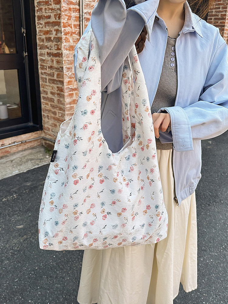 韩系新款碎花托特包女高级感轻量化单肩包通勤腋下包大容量购物袋