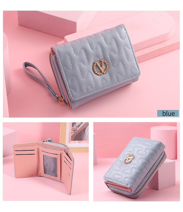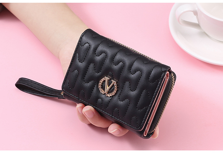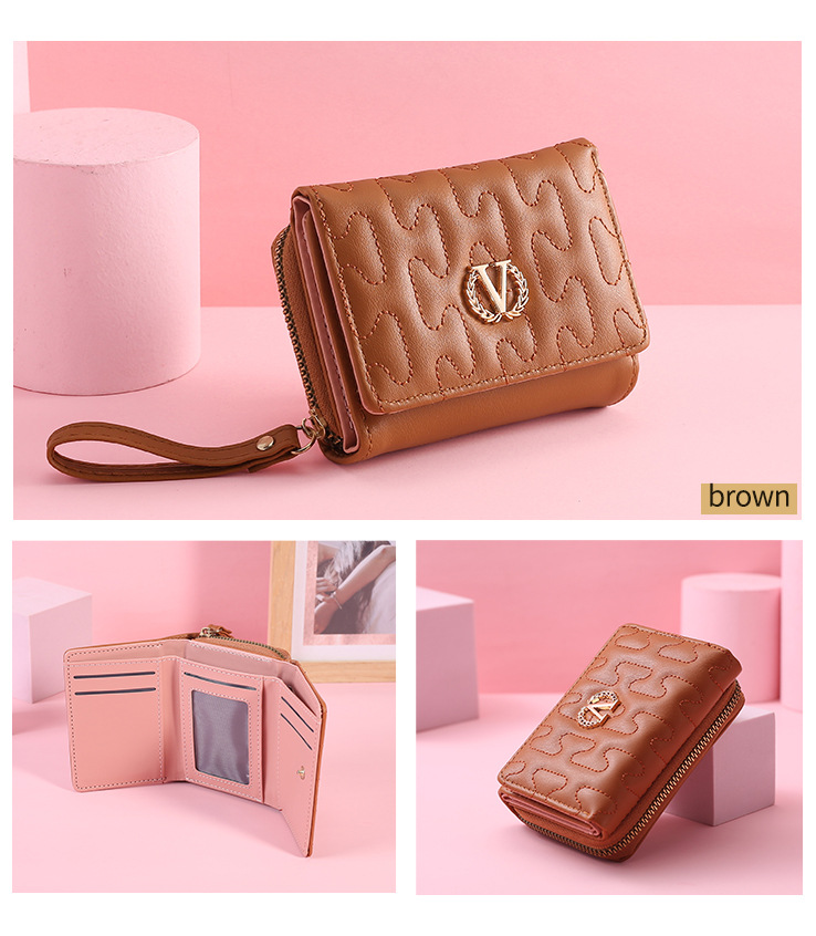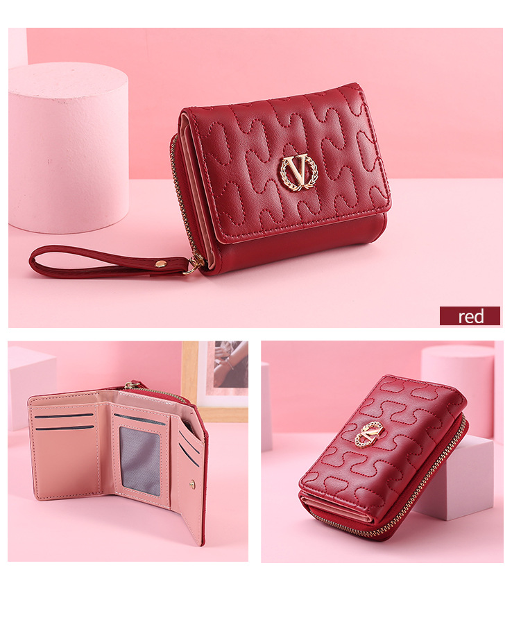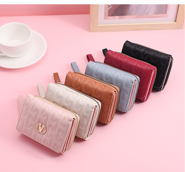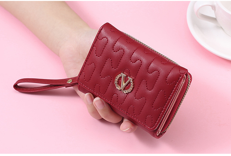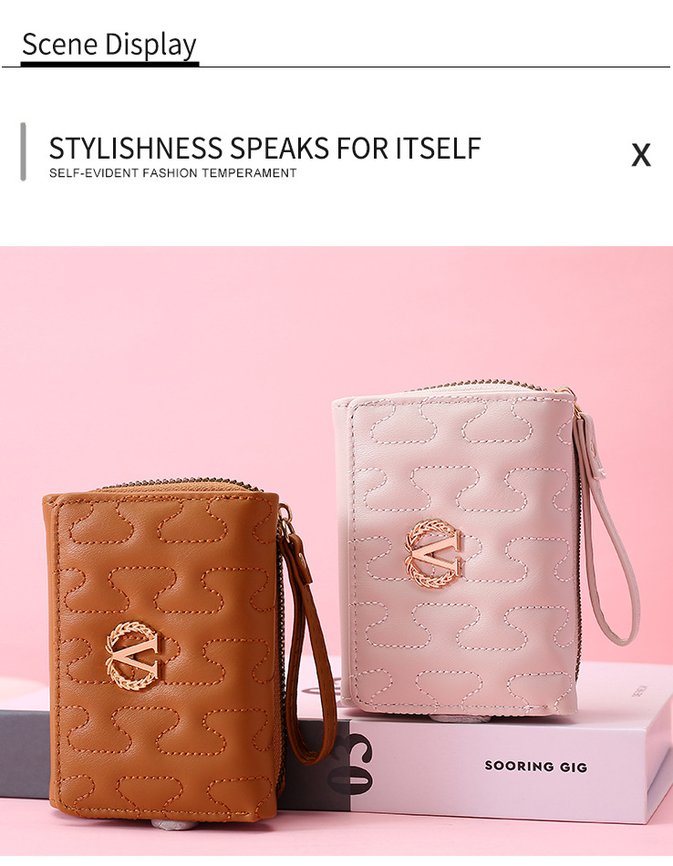 新款女士短款钱包百搭刺绣零钱包女款高级感钱包女短款批发