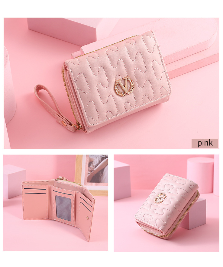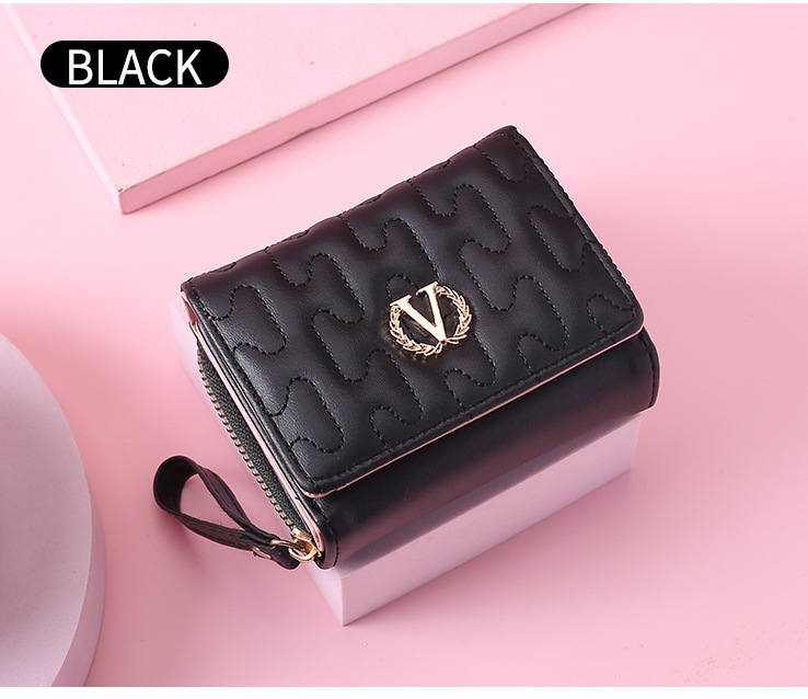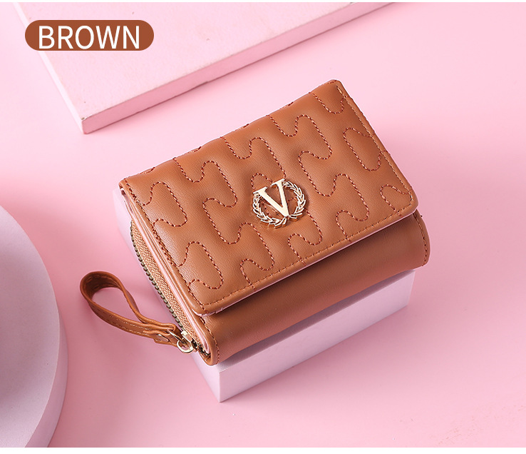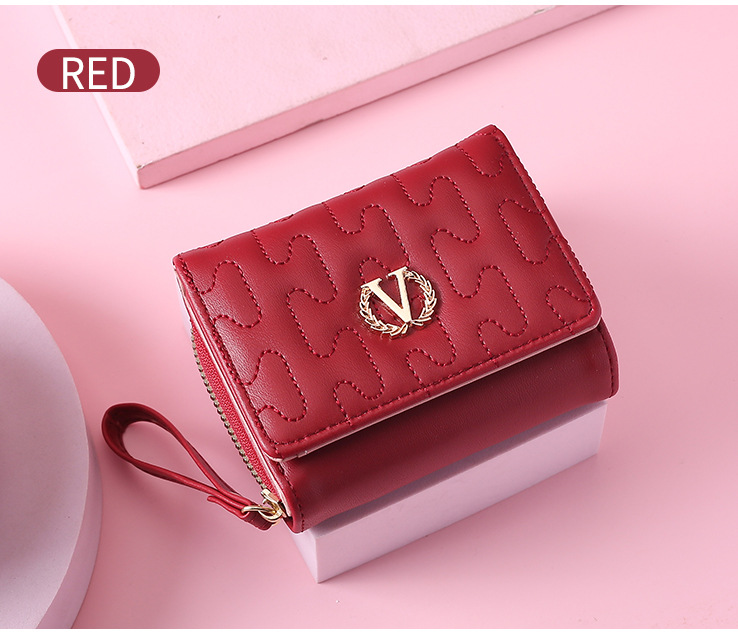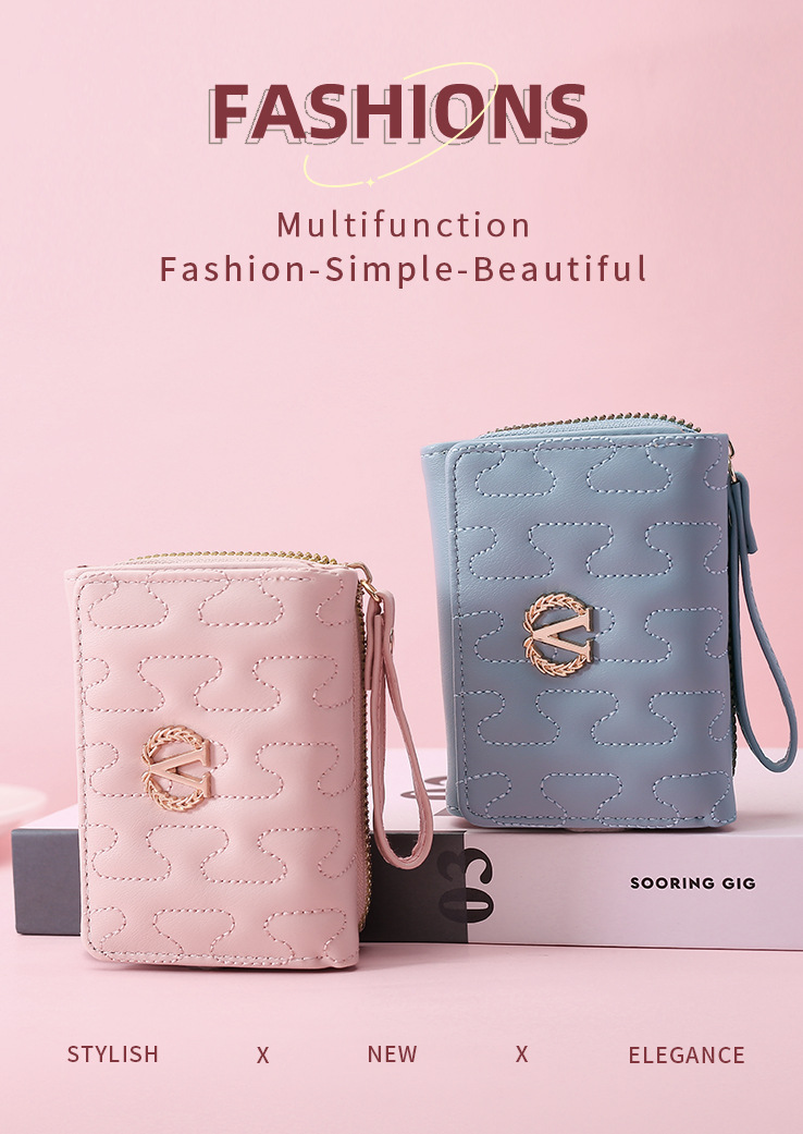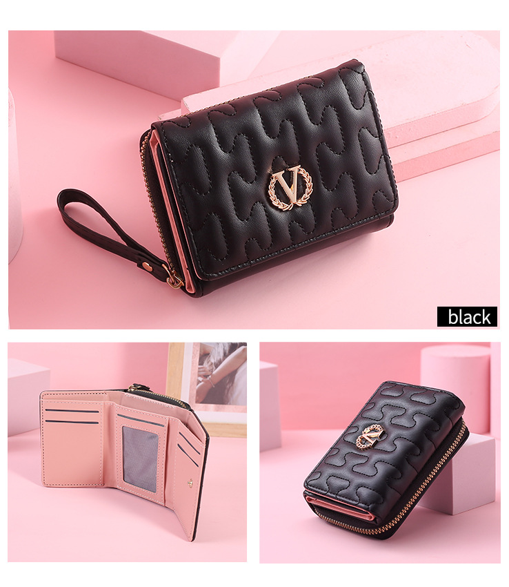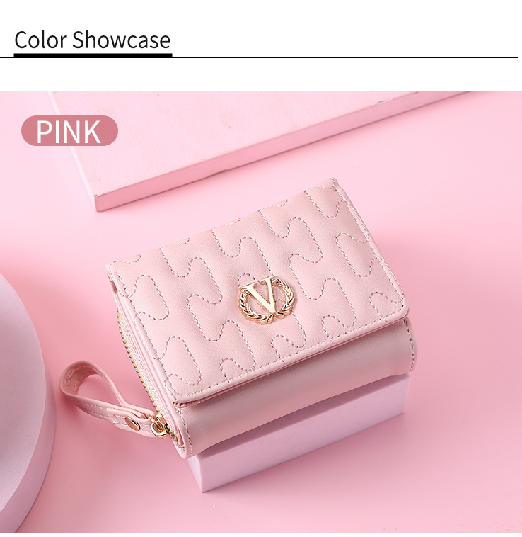 新款女士短款钱包百搭刺绣零钱包女款高级感钱包女短款批发