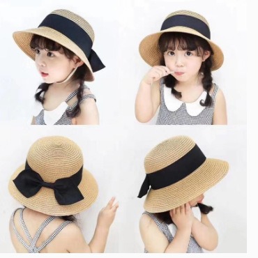 亲子大檐草帽夏季防晒太阳帽简约百搭女童海边沙滩遮阳帽防紫外线