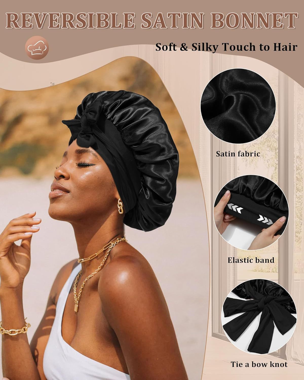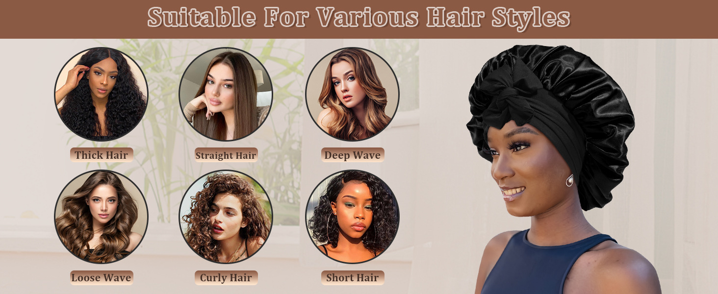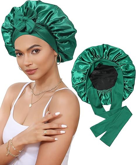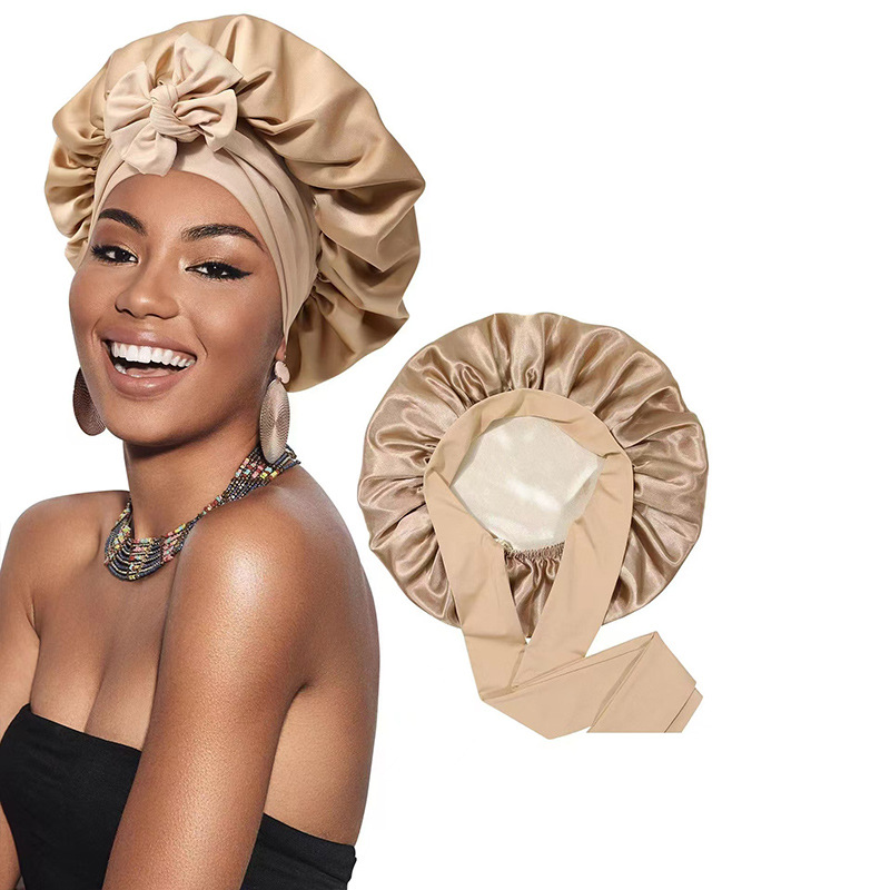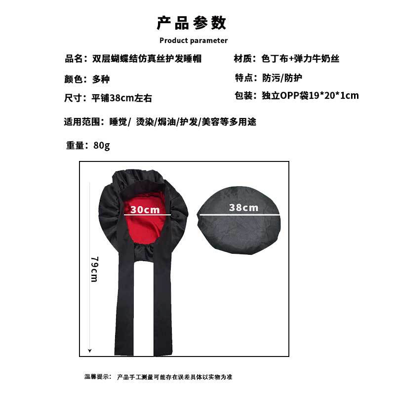 亚马逊爆款双层色丁睡帽飘带蝴蝶结仿真丝帽包头巾美容家居护发帽