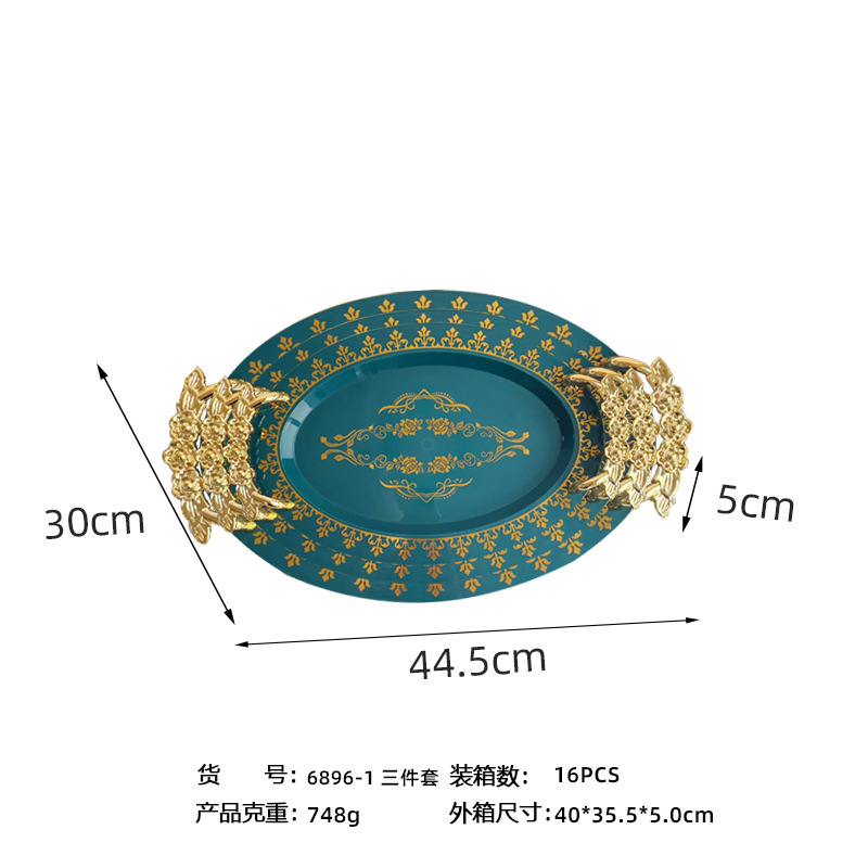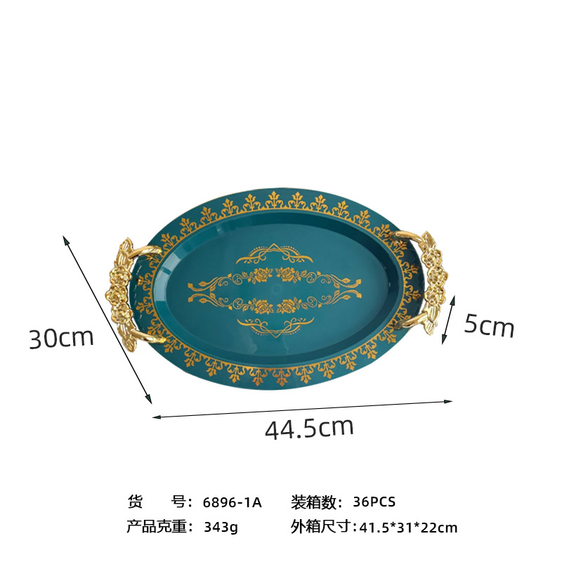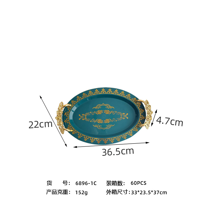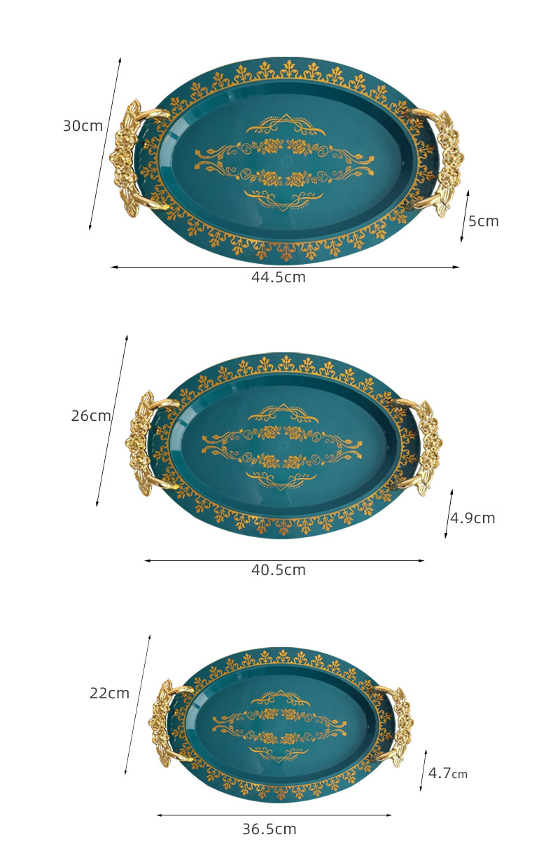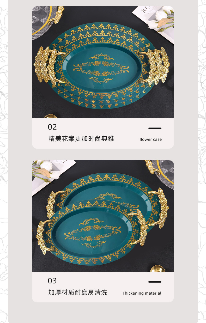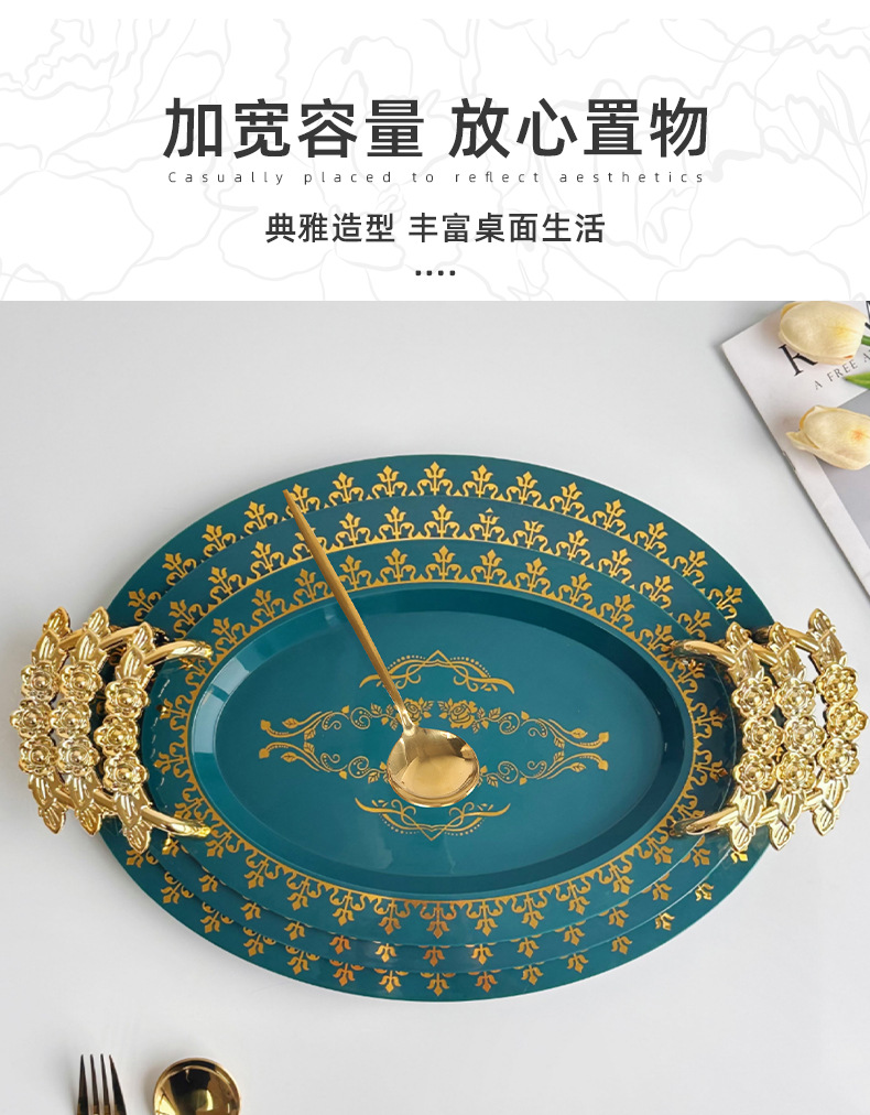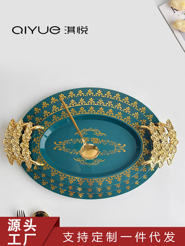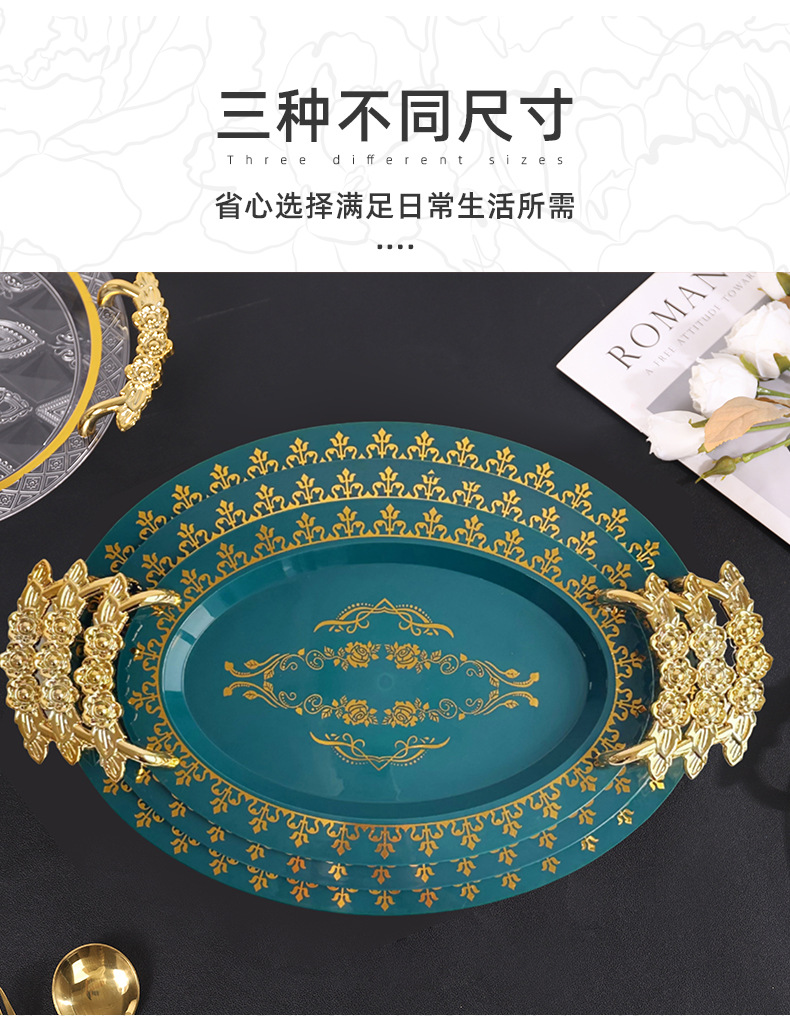 绿金椭圆托盘跨境电商北欧轻奢风果盘茶盘点心盘酒店宴会放水杯盘