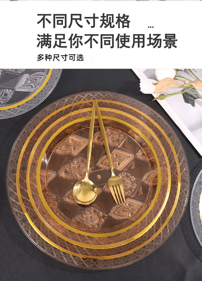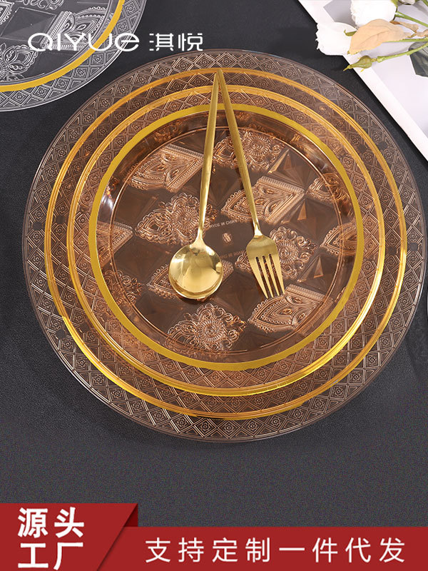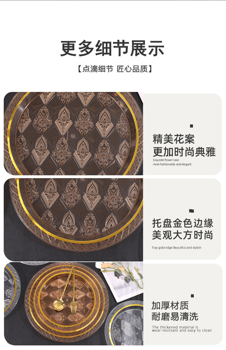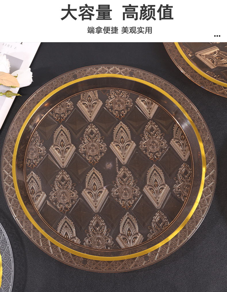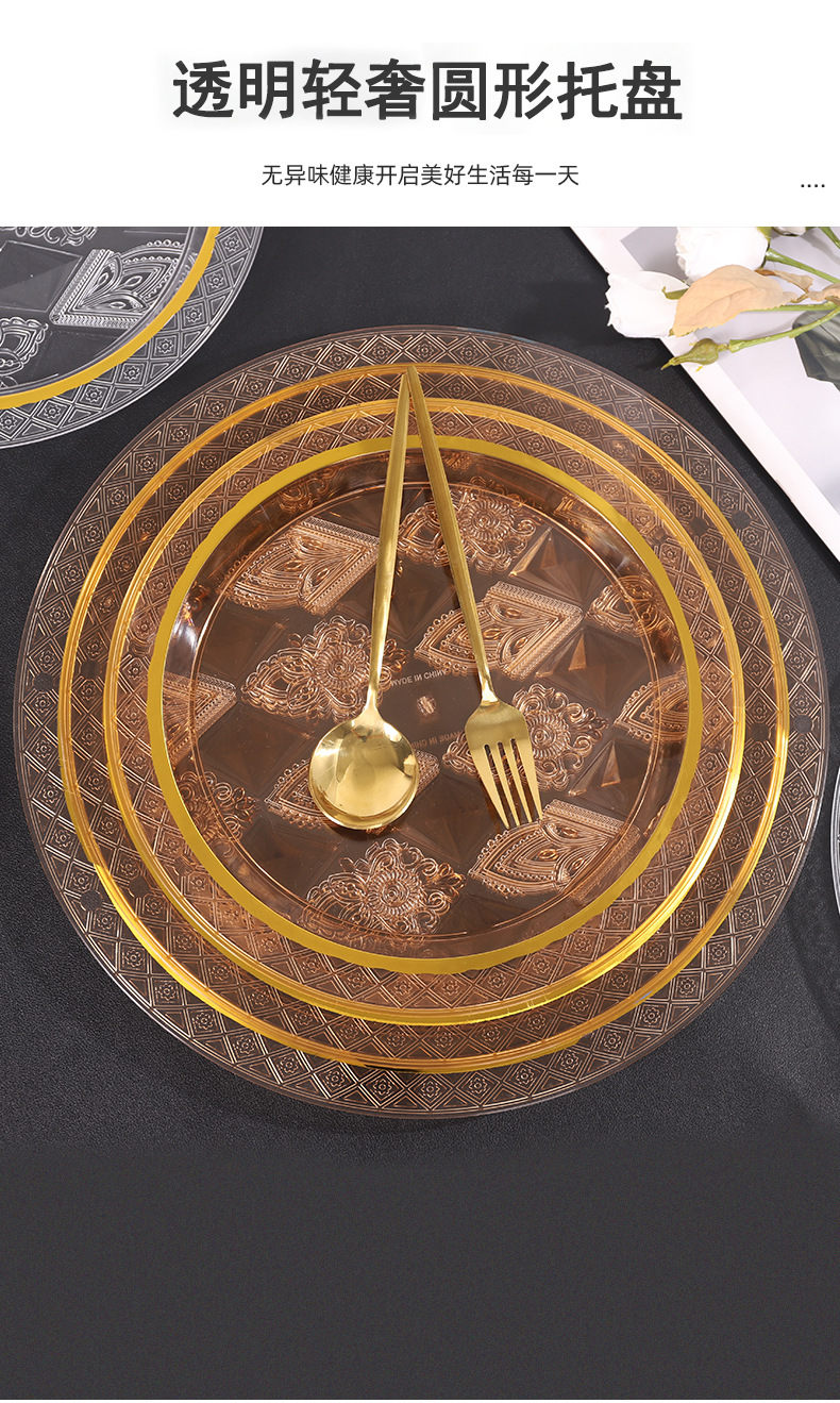 透明琥珀色圆形烫金跨境商用北欧ins风托盘茶盘果盘蛋糕盘美容院