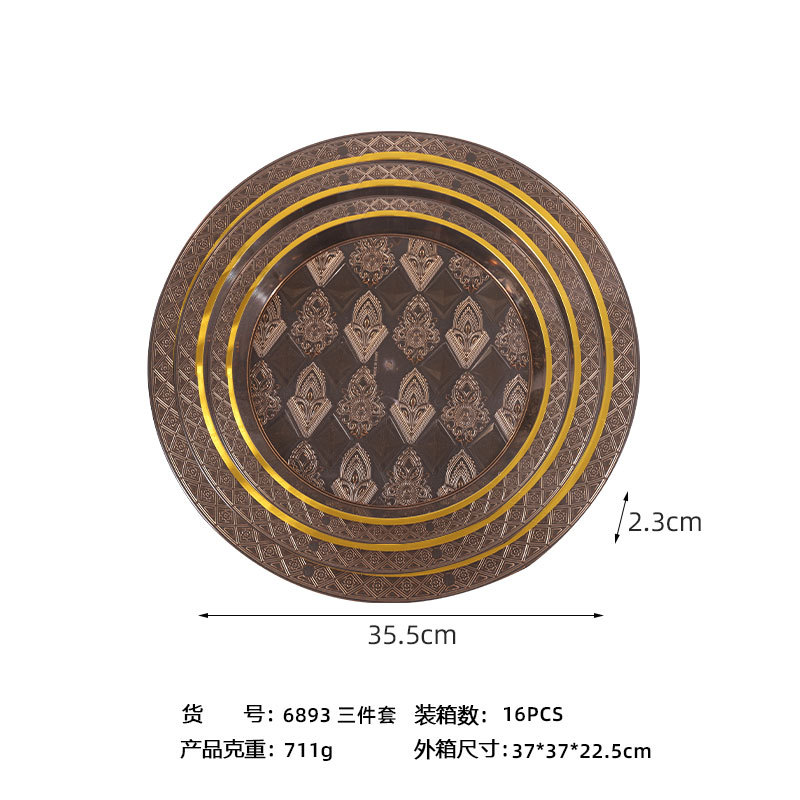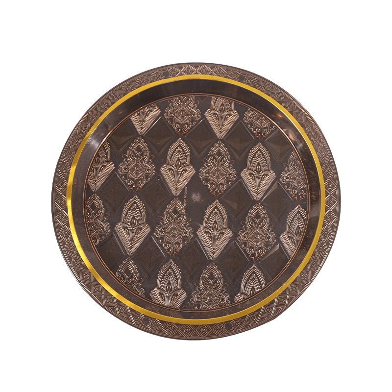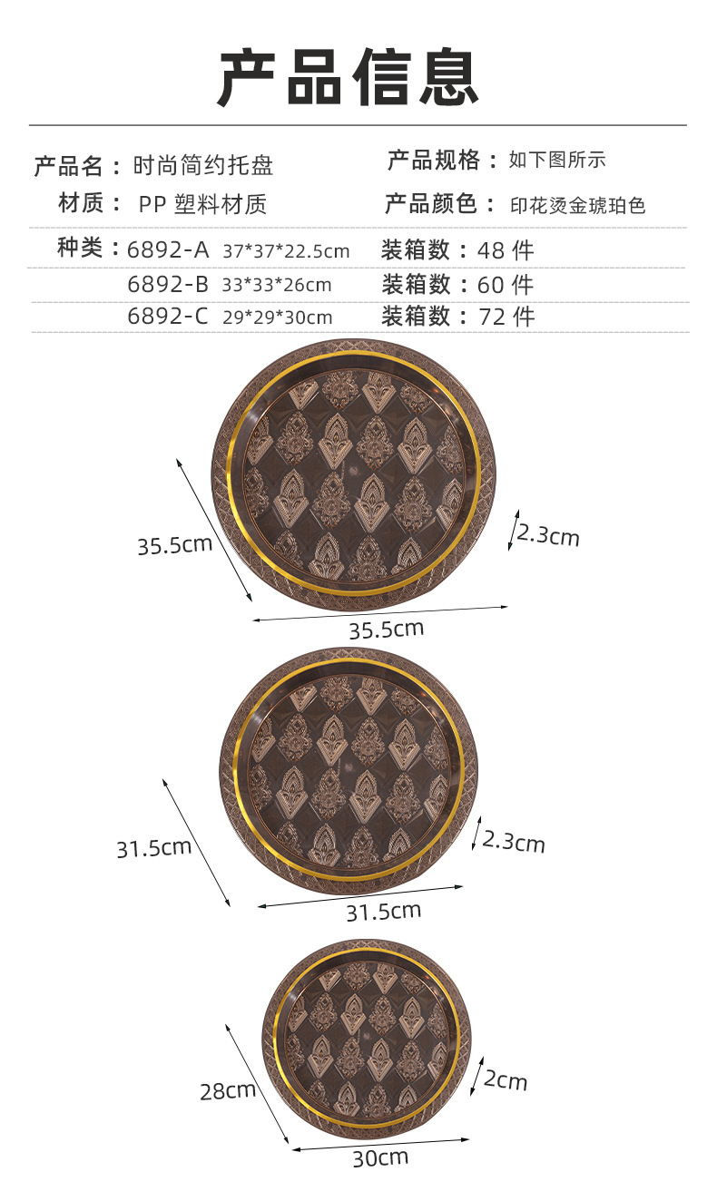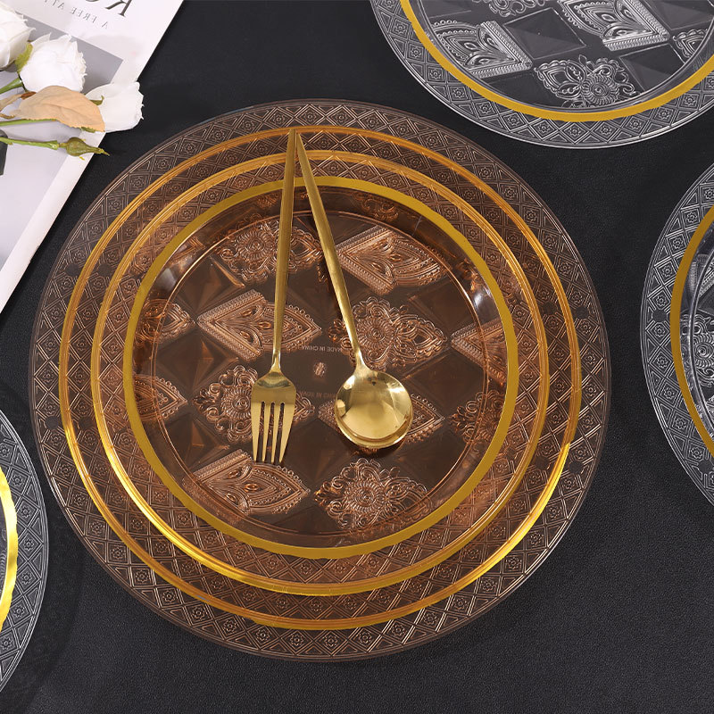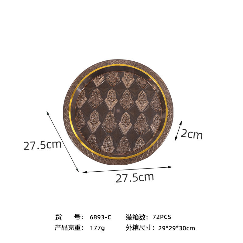 透明琥珀色圆形烫金跨境商用北欧ins风托盘茶盘果盘蛋糕盘美容院