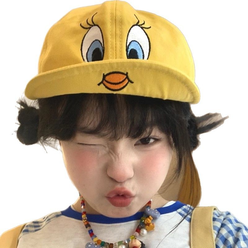 韩国崔弟翠儿翻檐鸭舌帽子可爱小黄鸭刺绣翠迪棒球帽