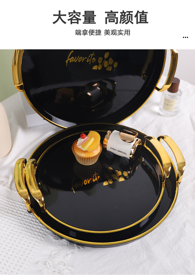 新款轻奢托盘黑金圆形餐厅茶盘茶几杯子放茶杯水杯家用客厅批发