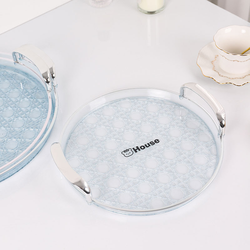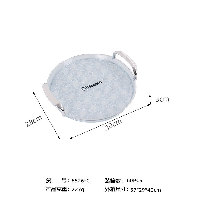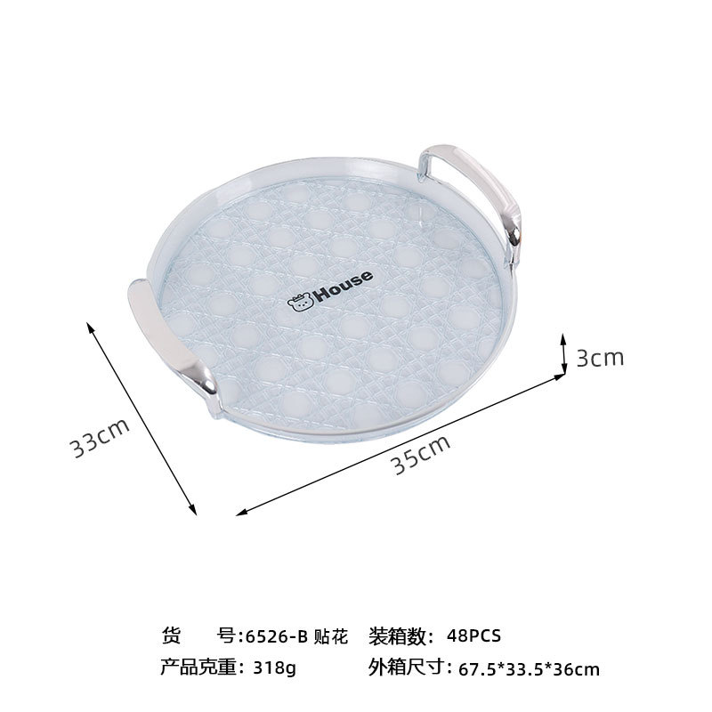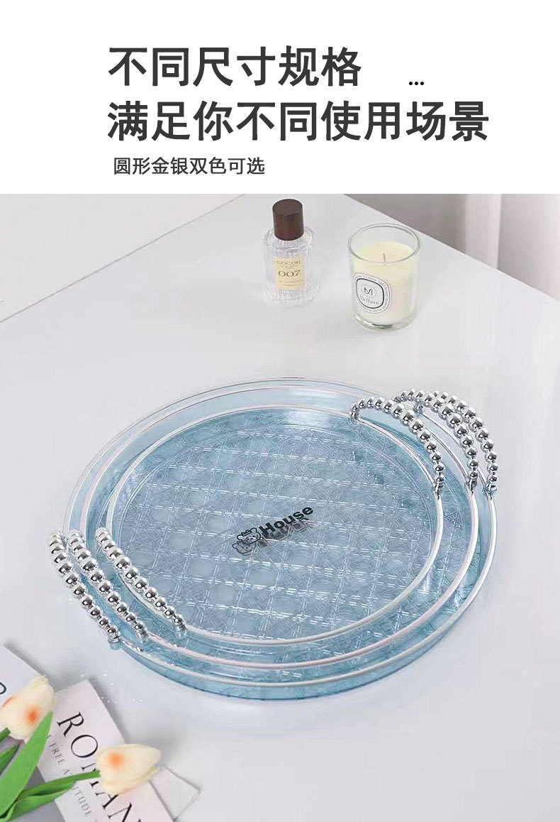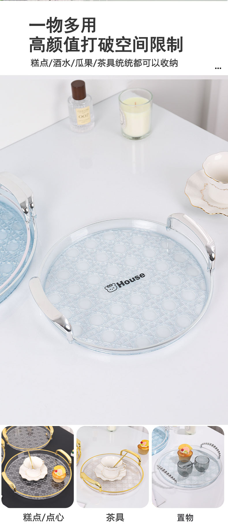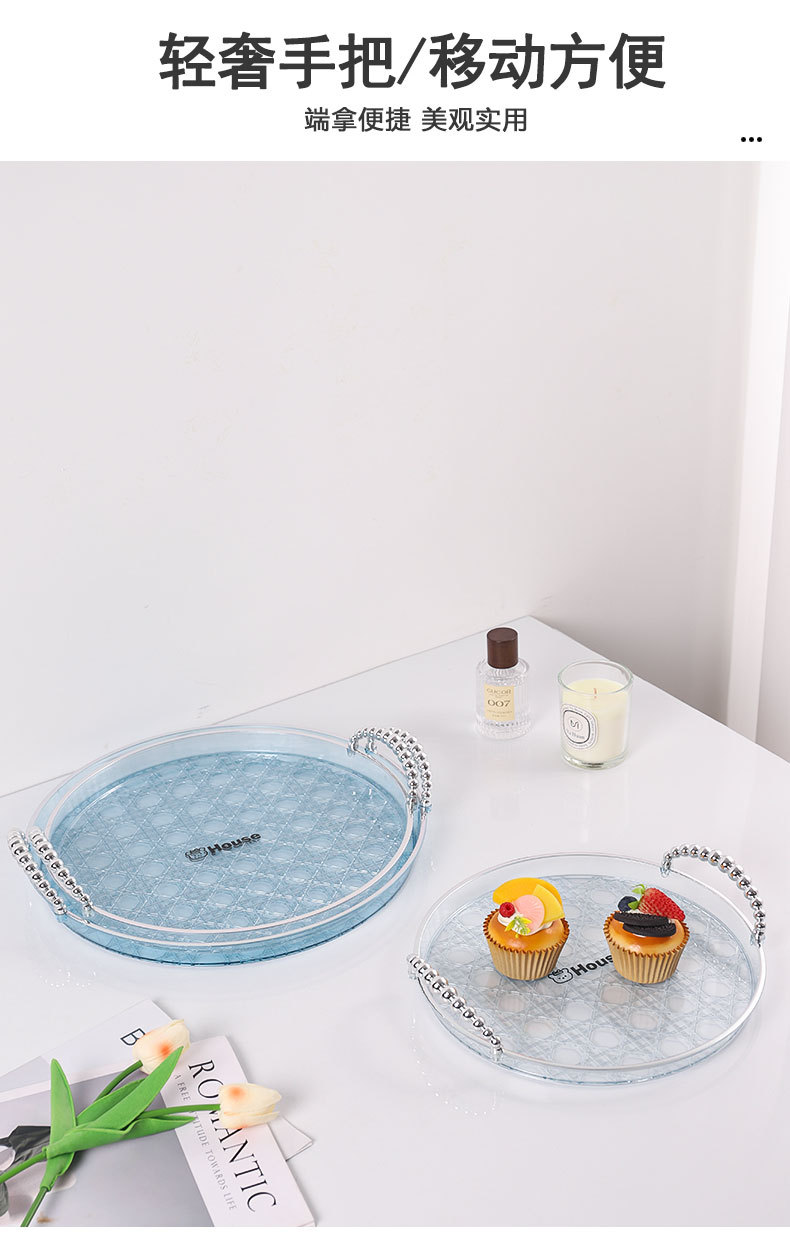 透蓝竹编纹托盘圆形餐厅茶盘茶几杯子放茶杯家用客厅餐盘厂批发
