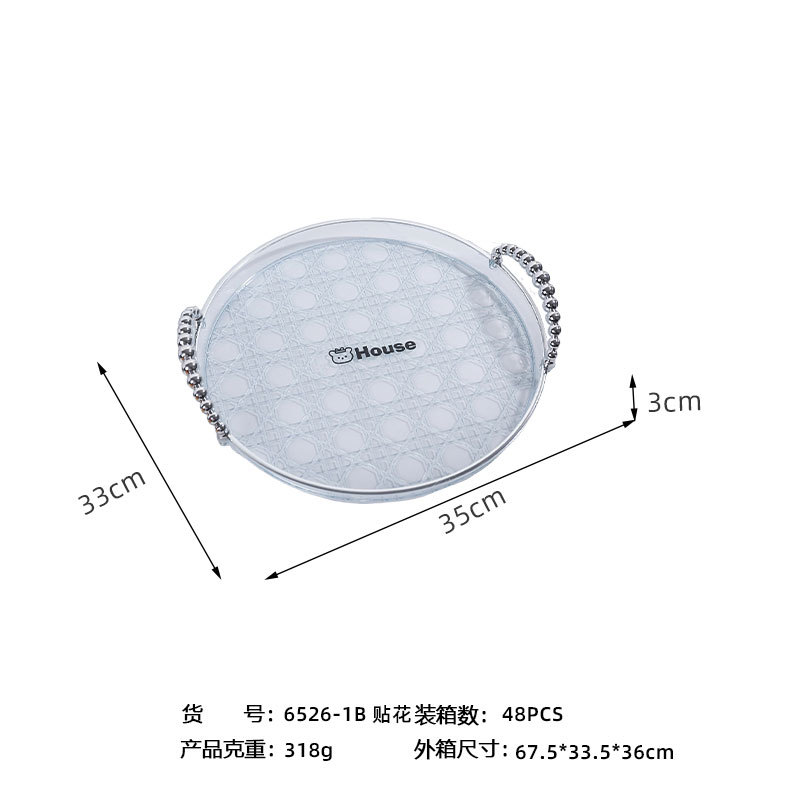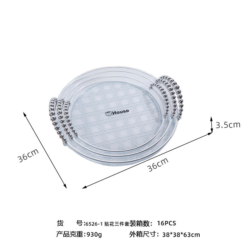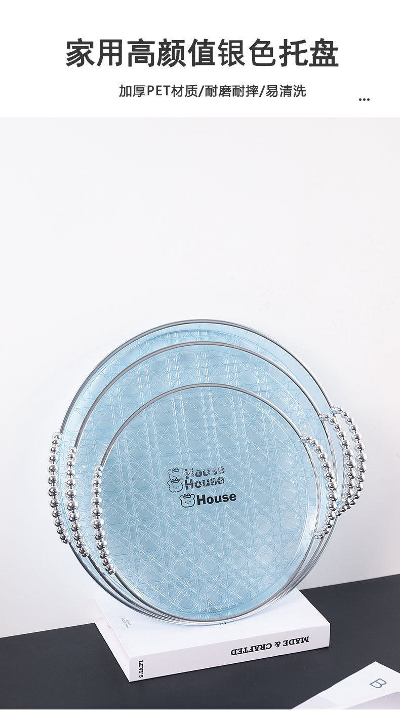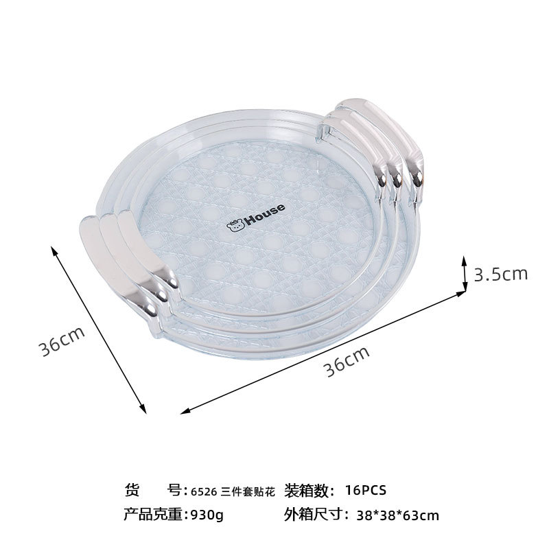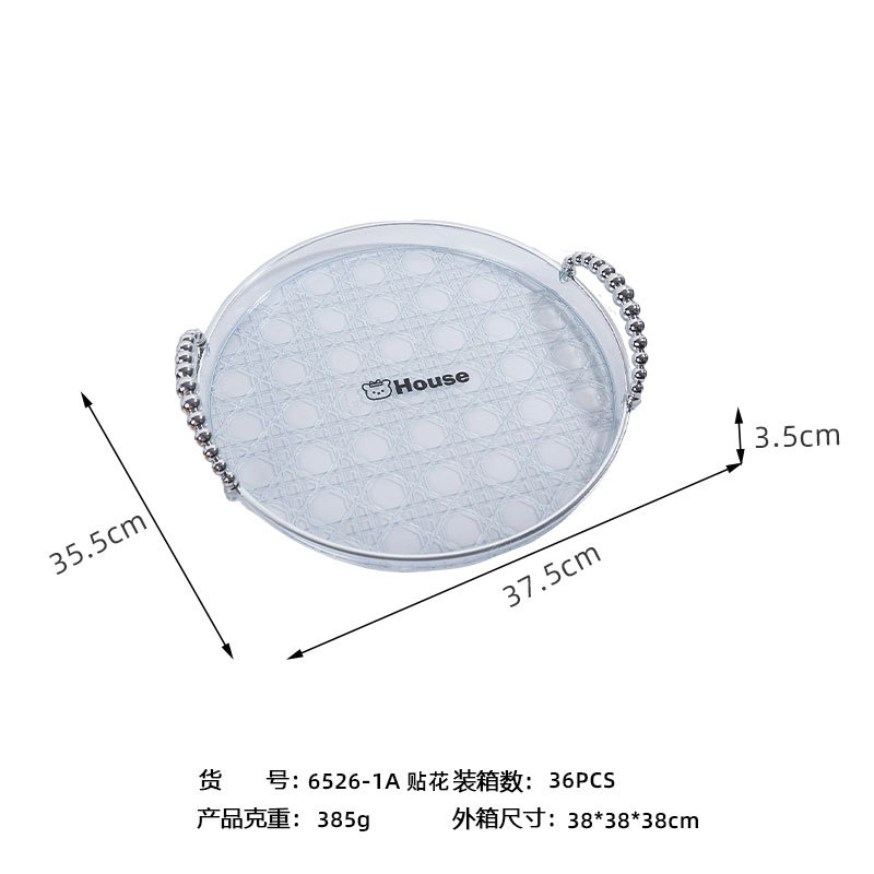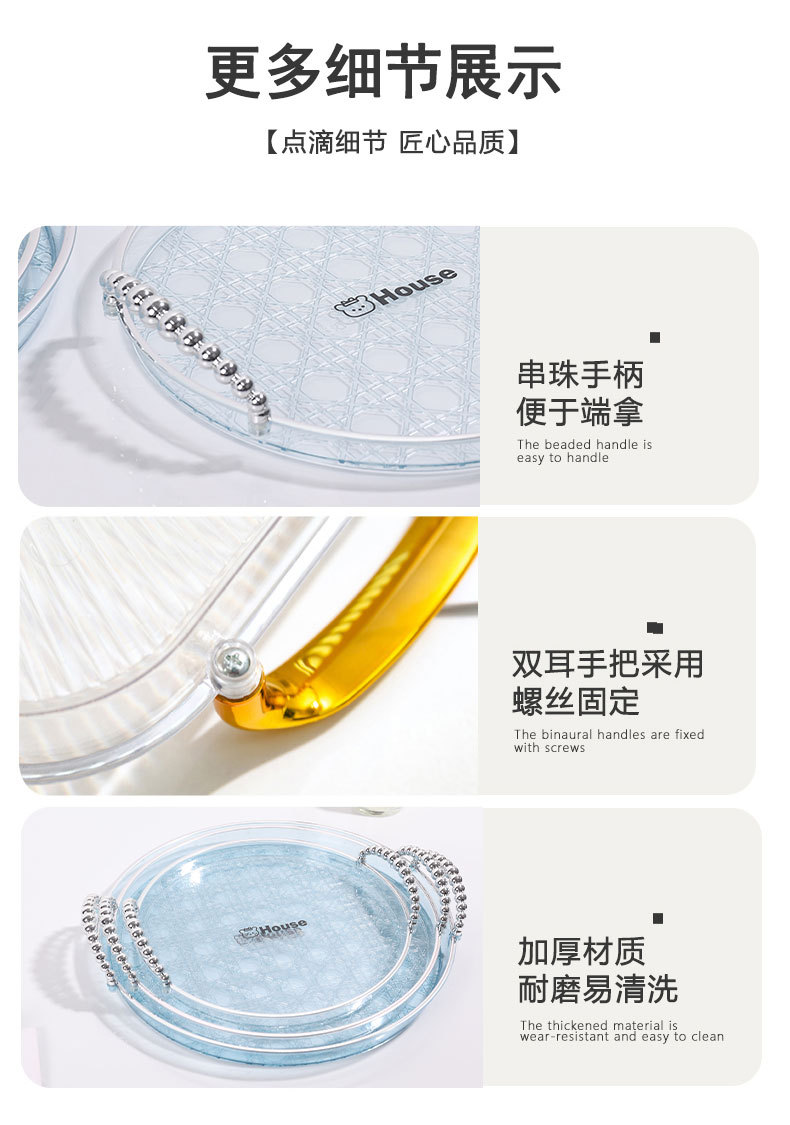 透蓝竹编纹托盘圆形餐厅茶盘茶几杯子放茶杯家用客厅餐盘厂批发