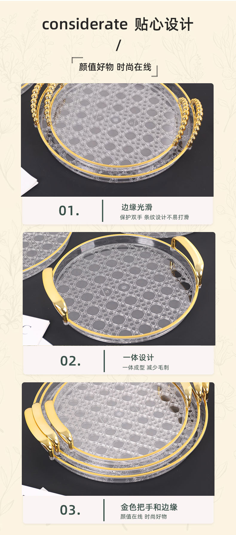 轻奢托盘tray圆形餐厅茶盘茶几杯子放茶杯水杯家用客厅餐盘厂批发
