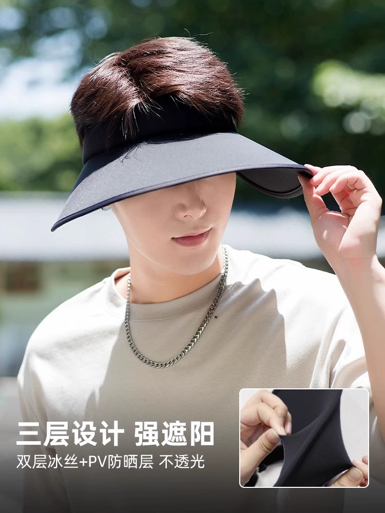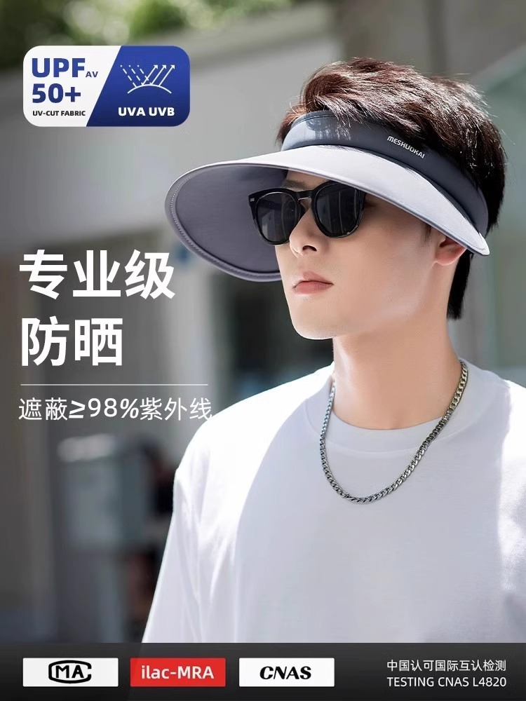 防晒帽男士户外防紫外线夏季大檐空顶太阳帽户外遮阳帽子登山帽女