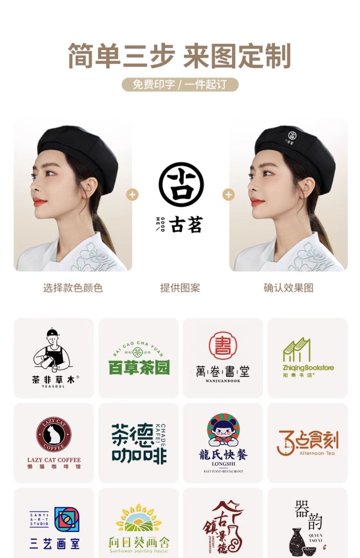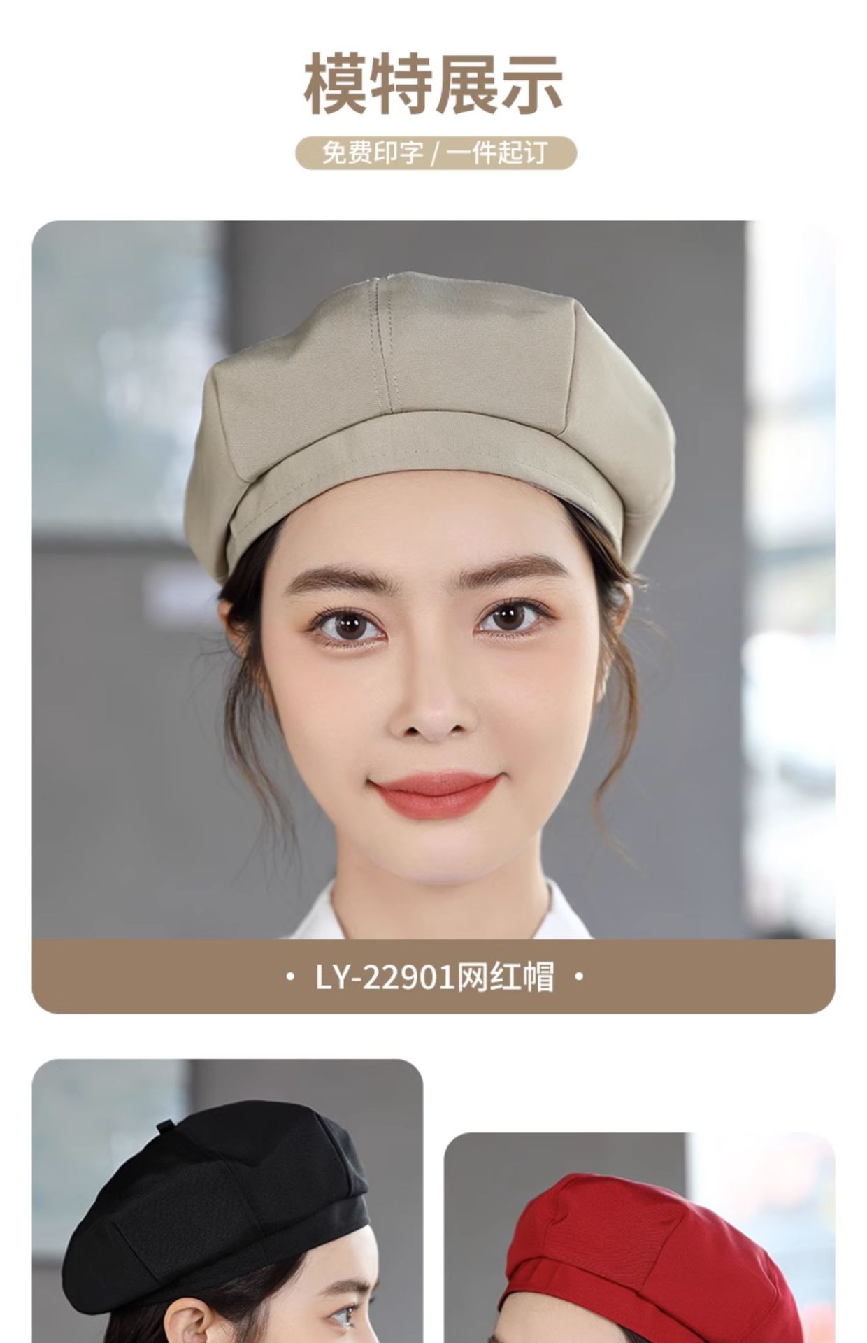 厨师帽子男款夏季餐饮厨房烘培奶茶店服务员网红工作贝雷帽女