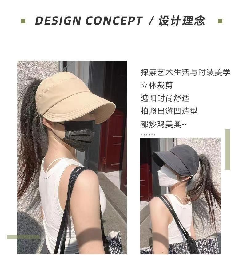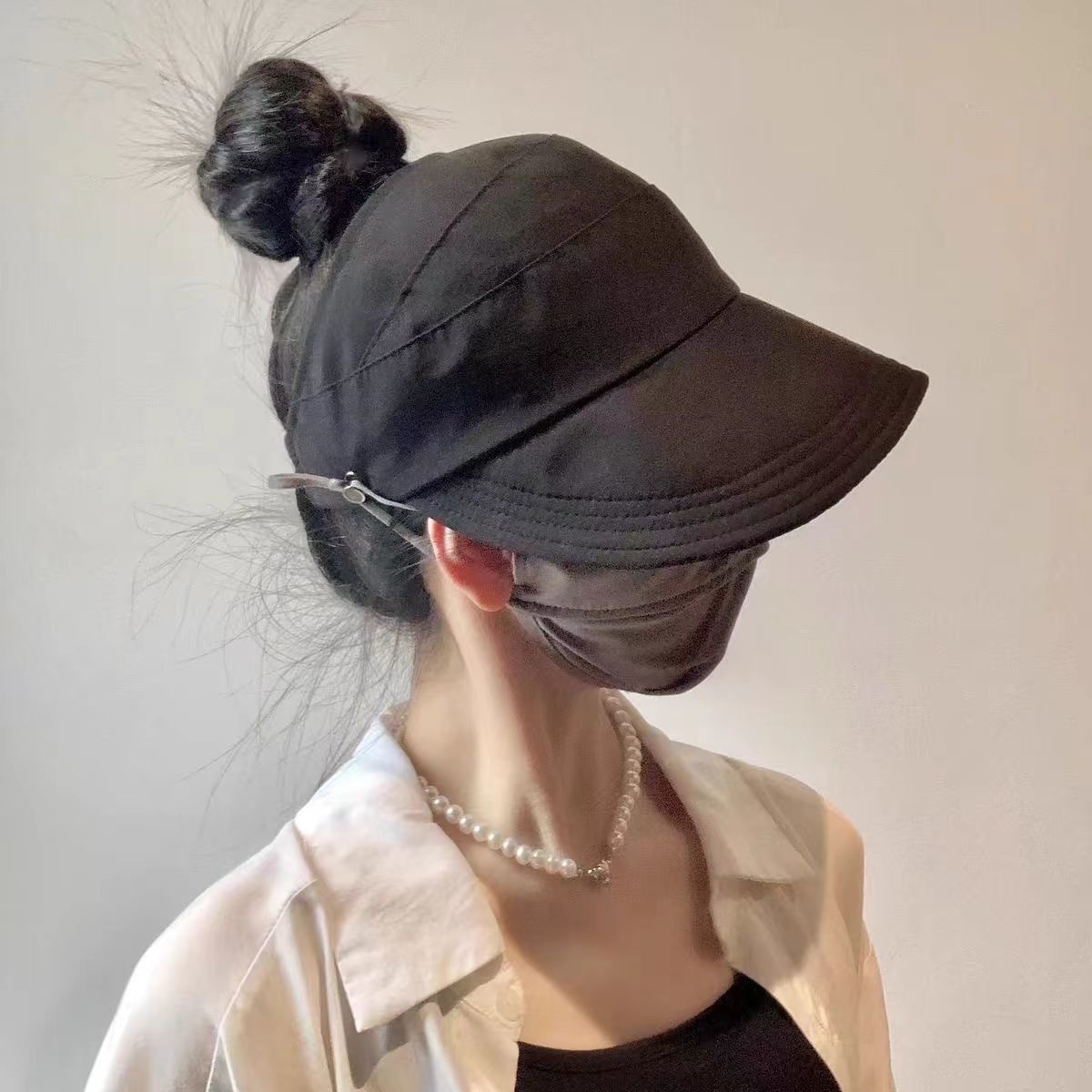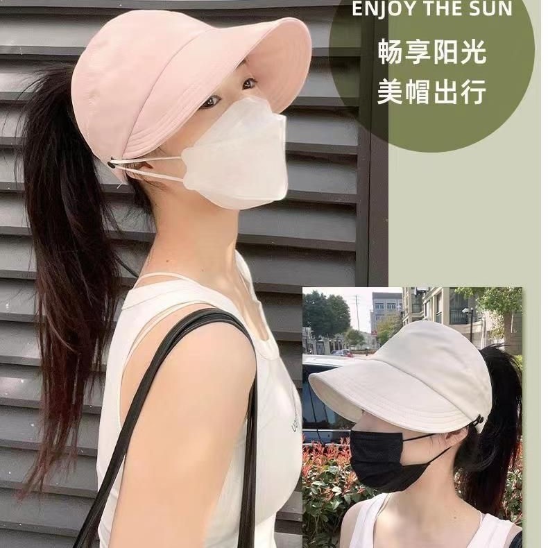 2024防晒帽女赵露思新款渔夫帽太阳显脸小空顶速干可挂口罩遮阳帽
