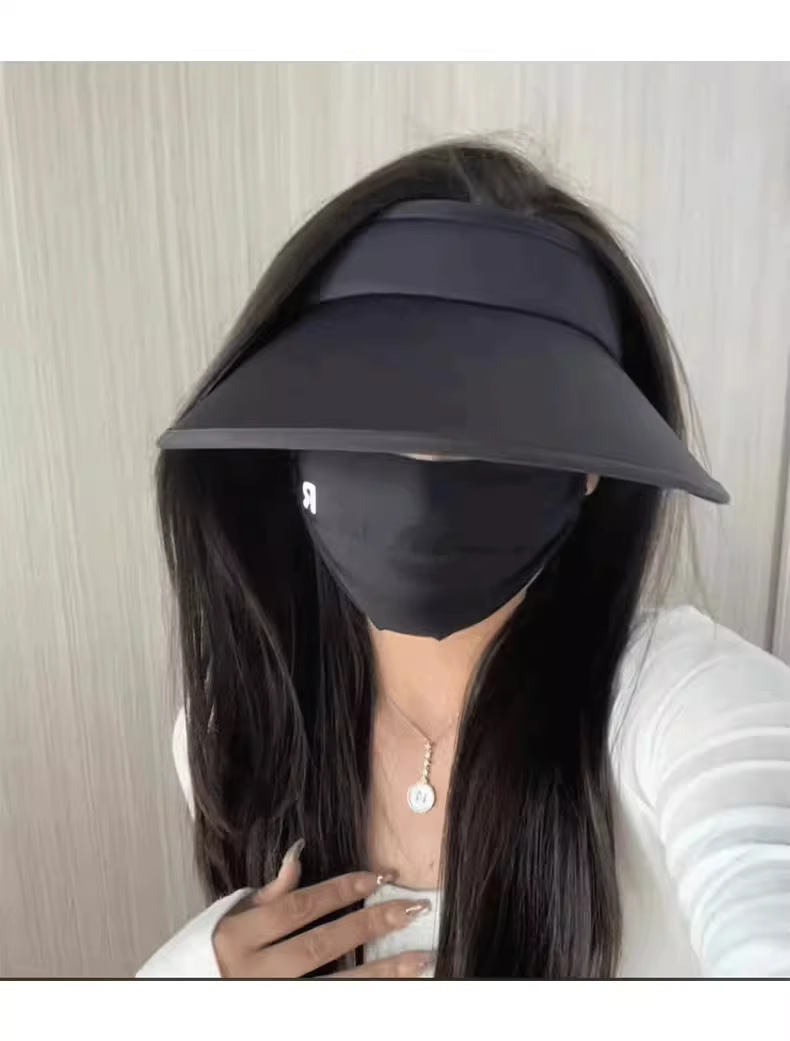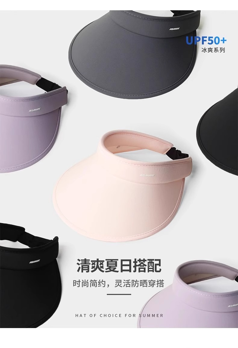 2024新款UV纯色发箍空顶帽女夏季防紫外线黑色冰丝遮阳防晒帽