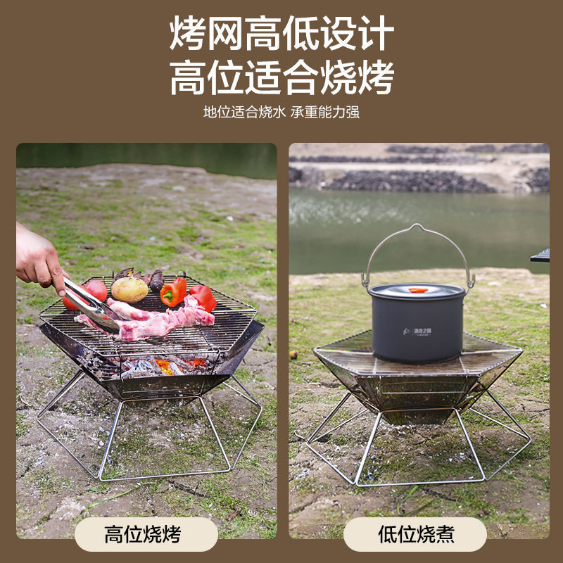 不锈钢烧烤架柴火炉六角焚火台折叠便携式烤肉架户外野餐炉具
