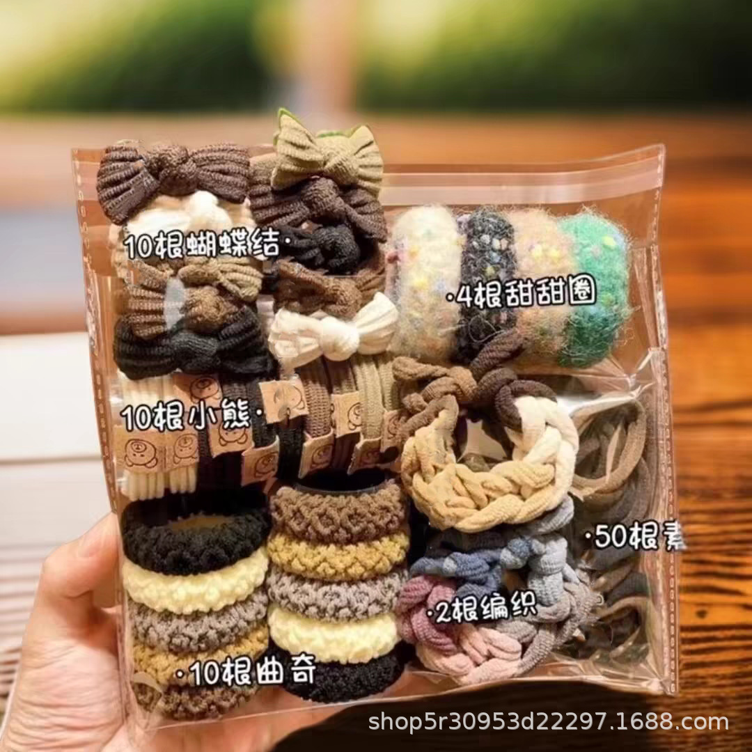 136件发圈套装皮筋扎发高级感女士头绳高弹力小熊橡皮筋耐用批发