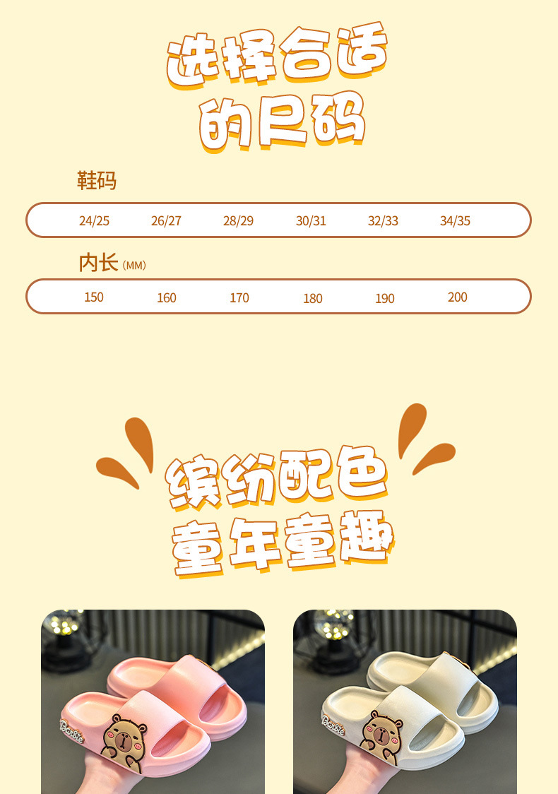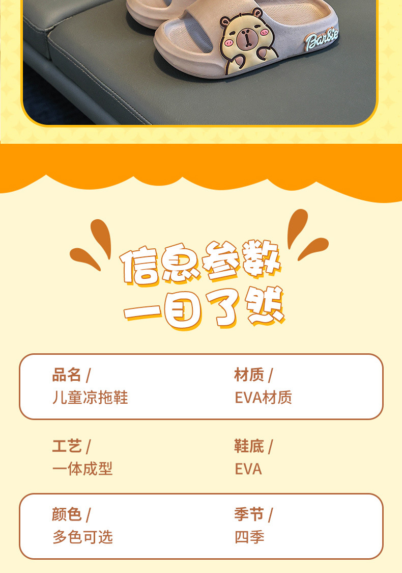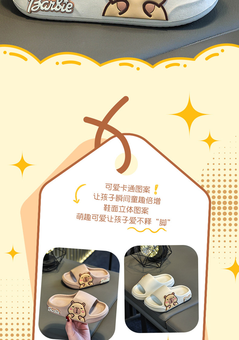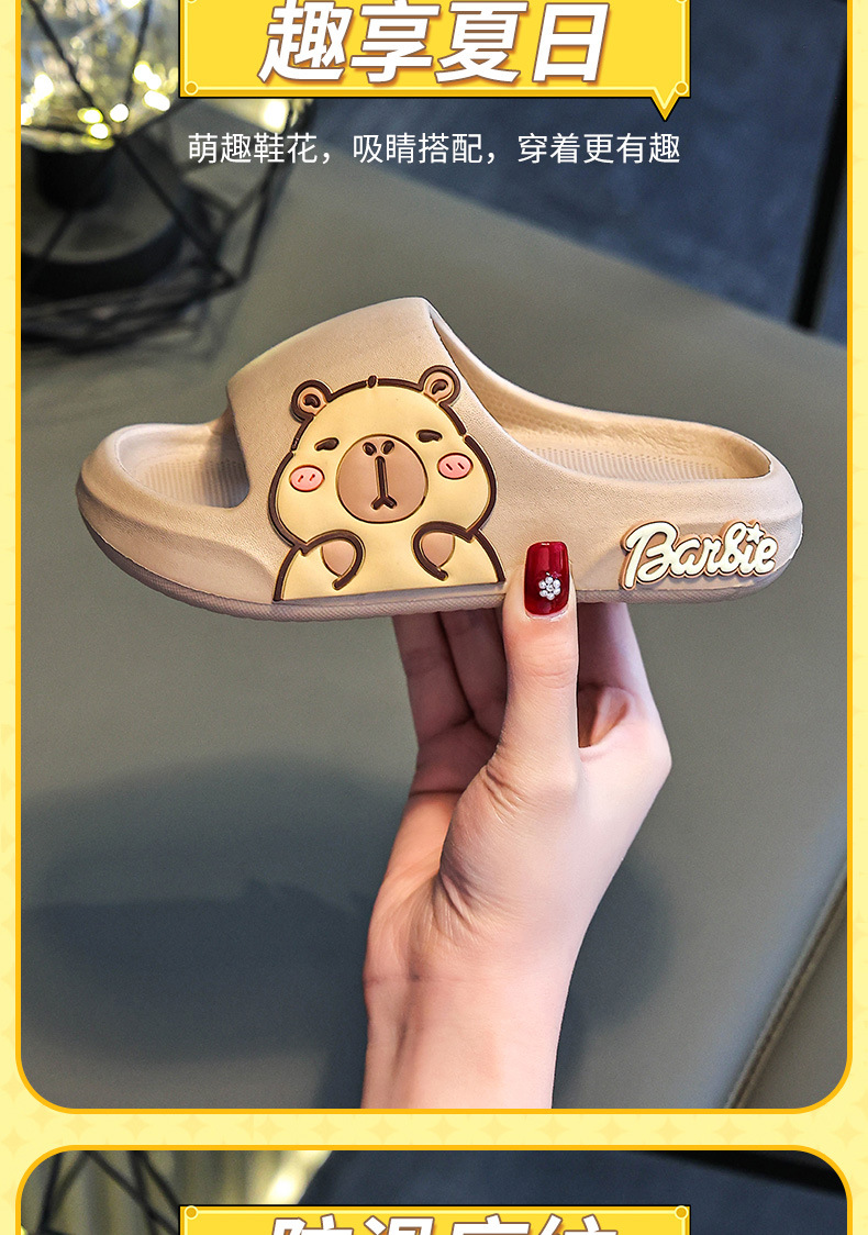 2025新款卡皮巴拉踩屎感儿童拖鞋女童室内家居浴室防滑亲子凉拖鞋